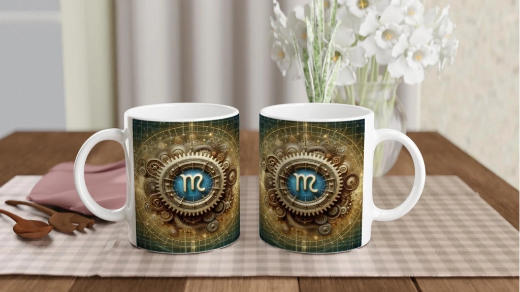 Başak Burcu Baskılı Kahve Kupası - Zamanın Çarkları Astroloji Mekanizması Vs3