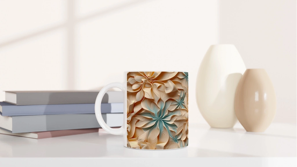 Bej Tonlarda Spiral Yaprak Desenli Kupa Bardak, katman katman kıvrımlı yüzeyi ve iç içe geçmiş yaprak formlarıyla estetik bir derinlik sunar. Minimalist ama etkileyici tarzıyla hem günlük kullanım hem de zarif bir hediye alternatifi olarak tercih edilebilir.