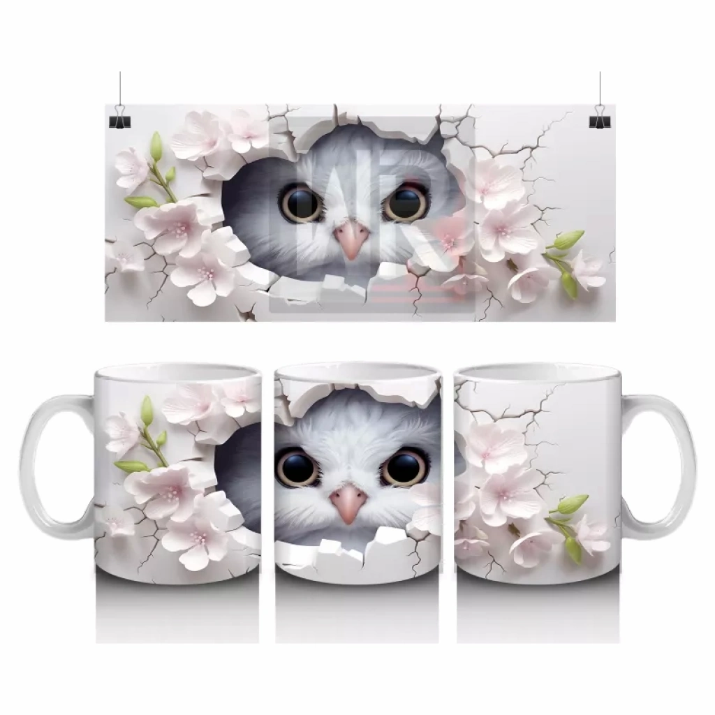 Beyaz çiçekler arasında bakan sevimli baykuş yüzü, sıcaklık ve zarafeti simgeliyor. Romantik ve samimi detayları sevenler için ideal bir tasarım.