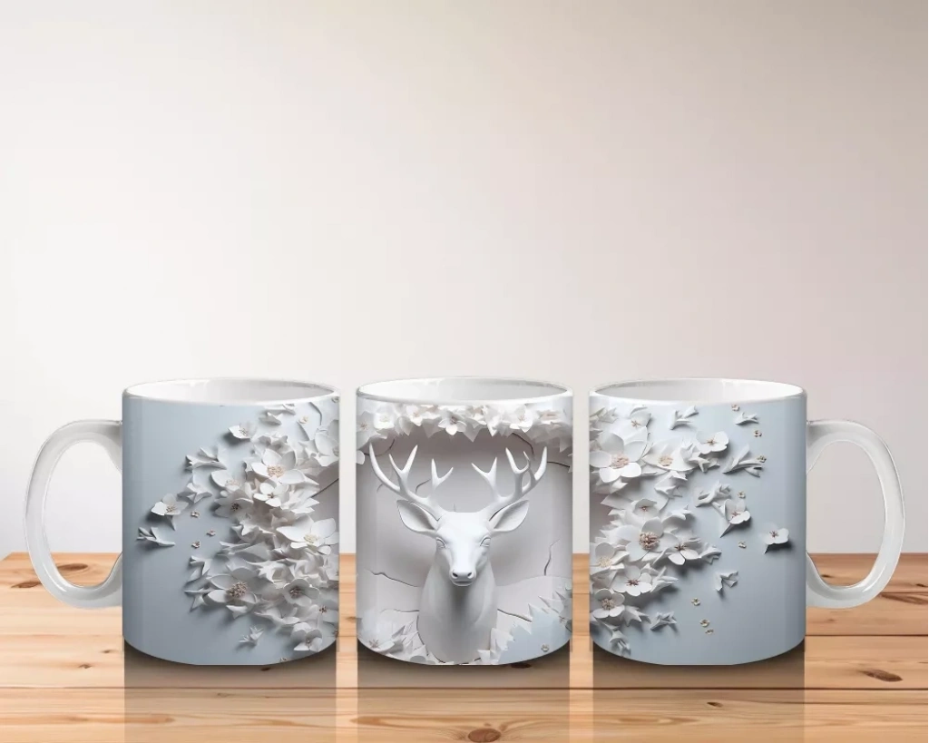 Beyaz çiçekler ve ince dallar arasında beliren zarif geyik figürü, doğallığı ve dinginliği temsil ediyor. Şıklığı doğadan ilham alan dekoratif kupa arayanlar için ideal bir model.