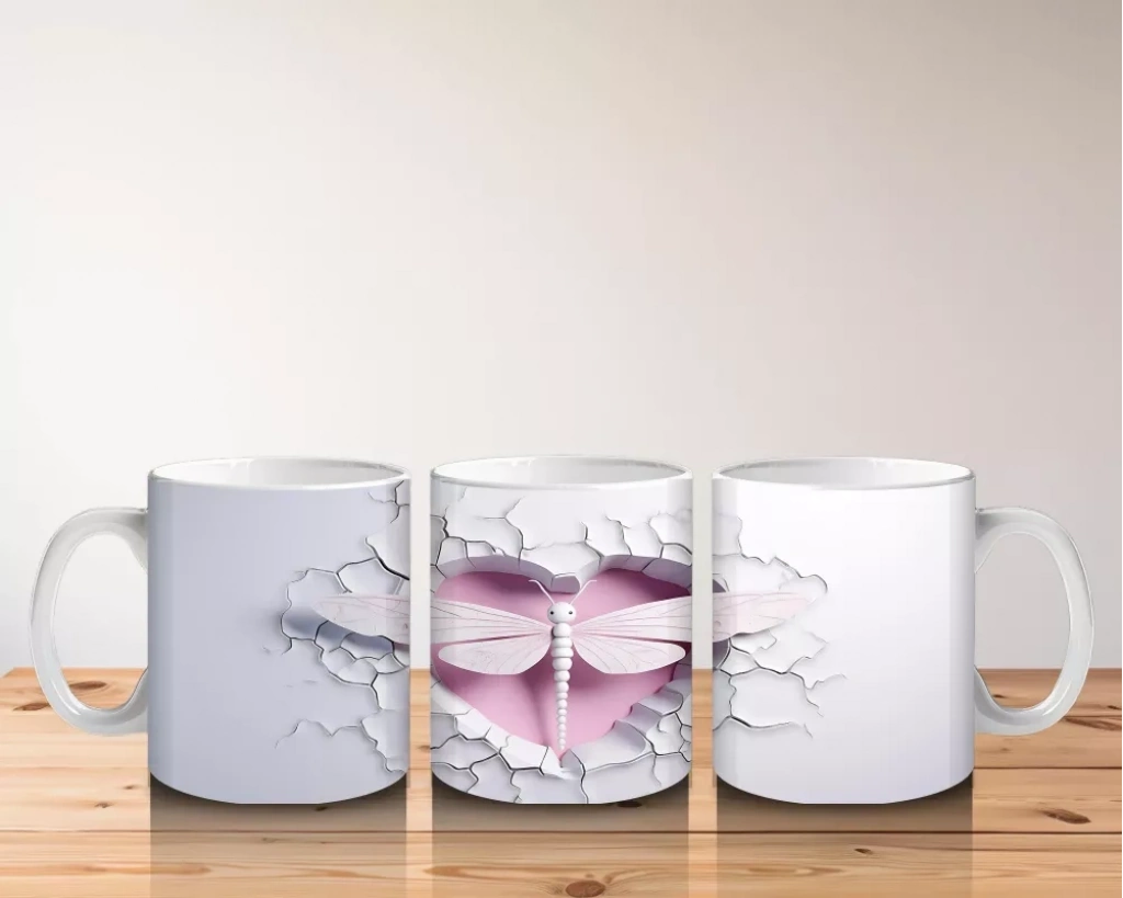 Beyaz Çiçekli Çatlakta Pembe Yusufçuk – Baskılı Kahve Kupası