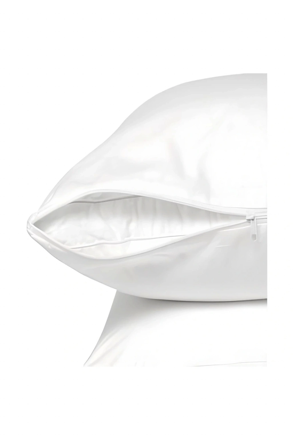Beyaz fermuarlı yastık mitili, yastık kılıfı
