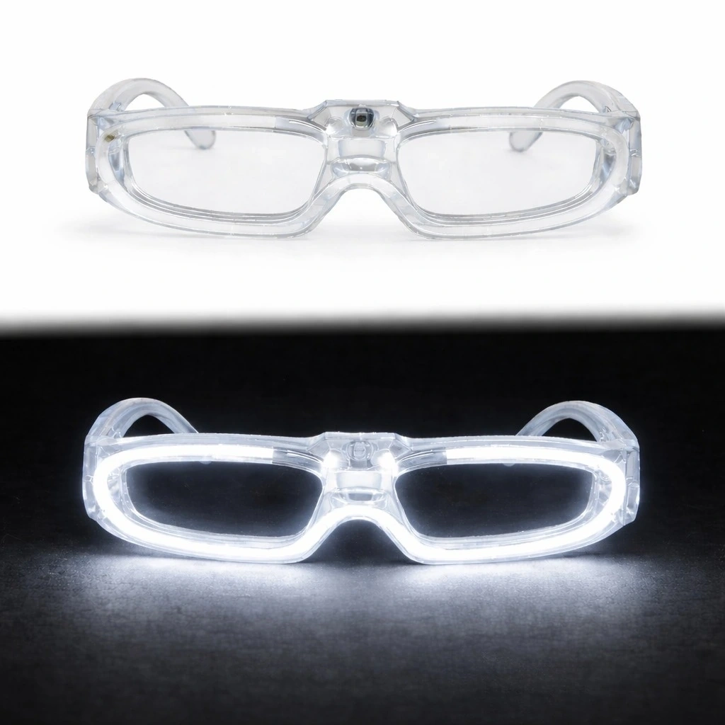 Beyaz Led Işıklı Parti Gözlüğü 3 Modlu – Glow & Gece Eğlence Gözlüğü