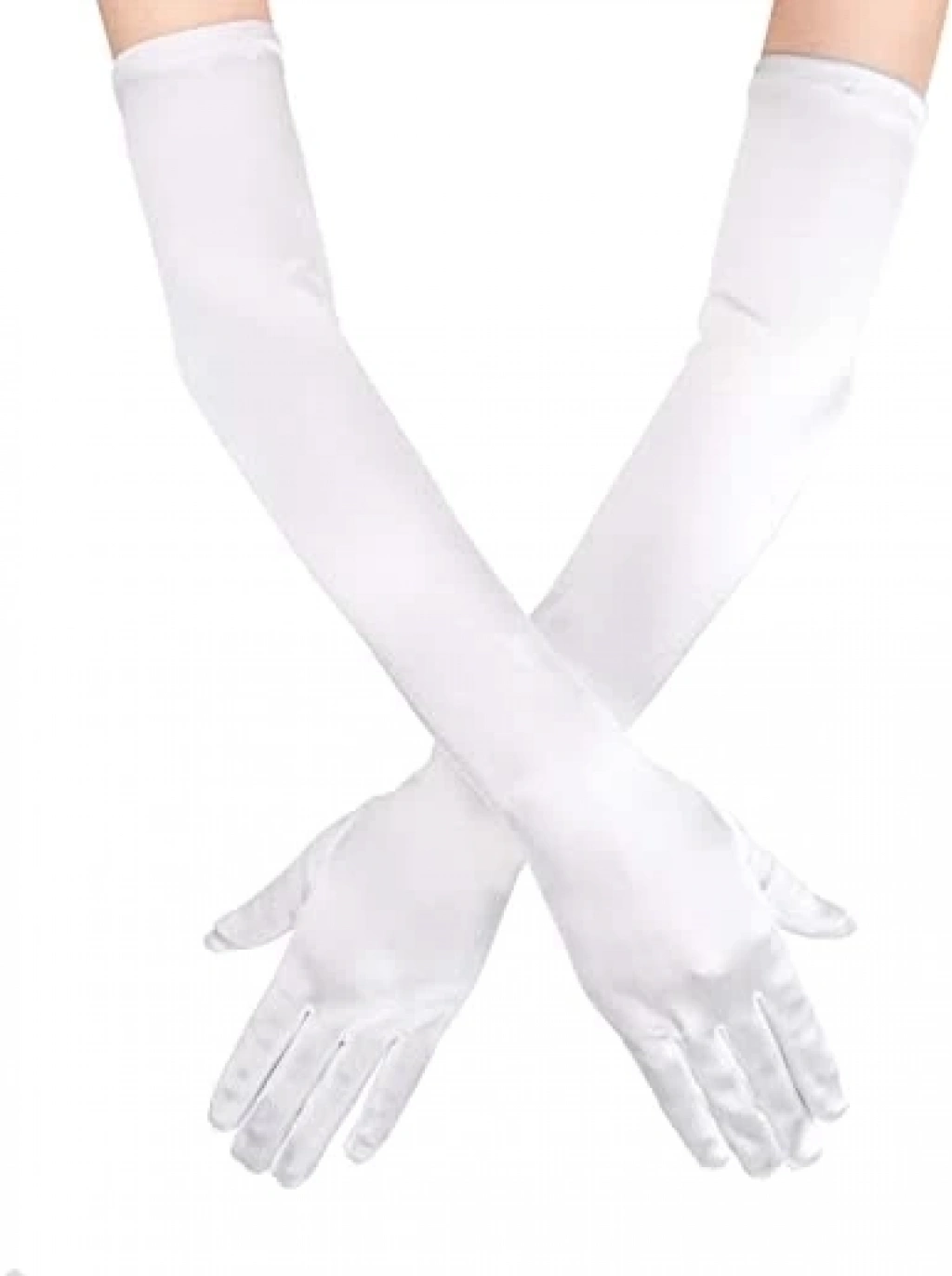 Beyaz Renk Dirseğe Kadar Uzun Kumaş Eldiven 40 Cm