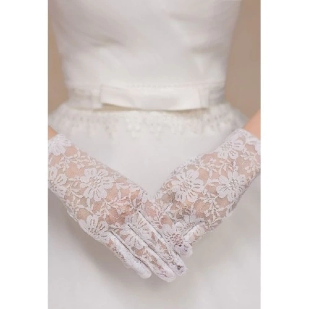 Beyaz Renk Kısa Dantelli Eldiven