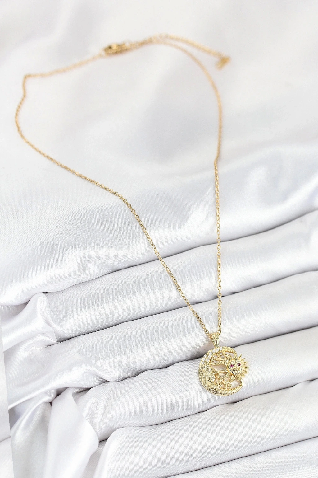 BFS 316L Çelik Zirkon Taşlı Ay Ve Güneş Model Gold Renk Kadın Kolye