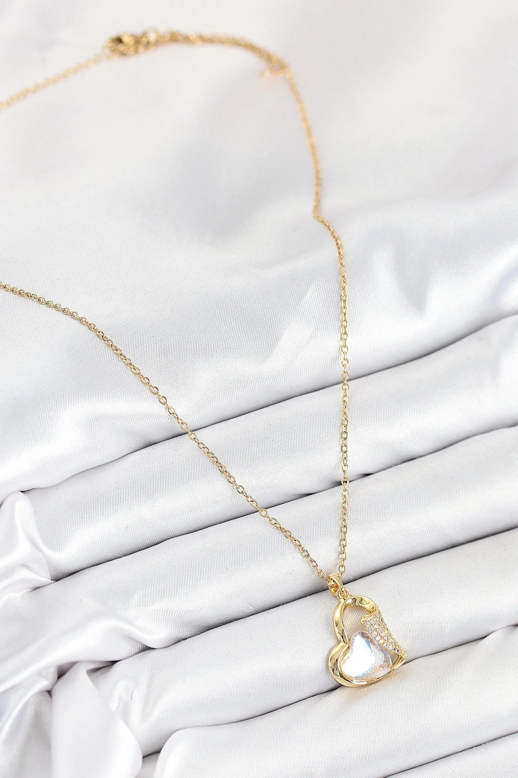 BFS 316L Çelik Zirkon Taşlı Kalp Model Gold Renk Kadın Kolye