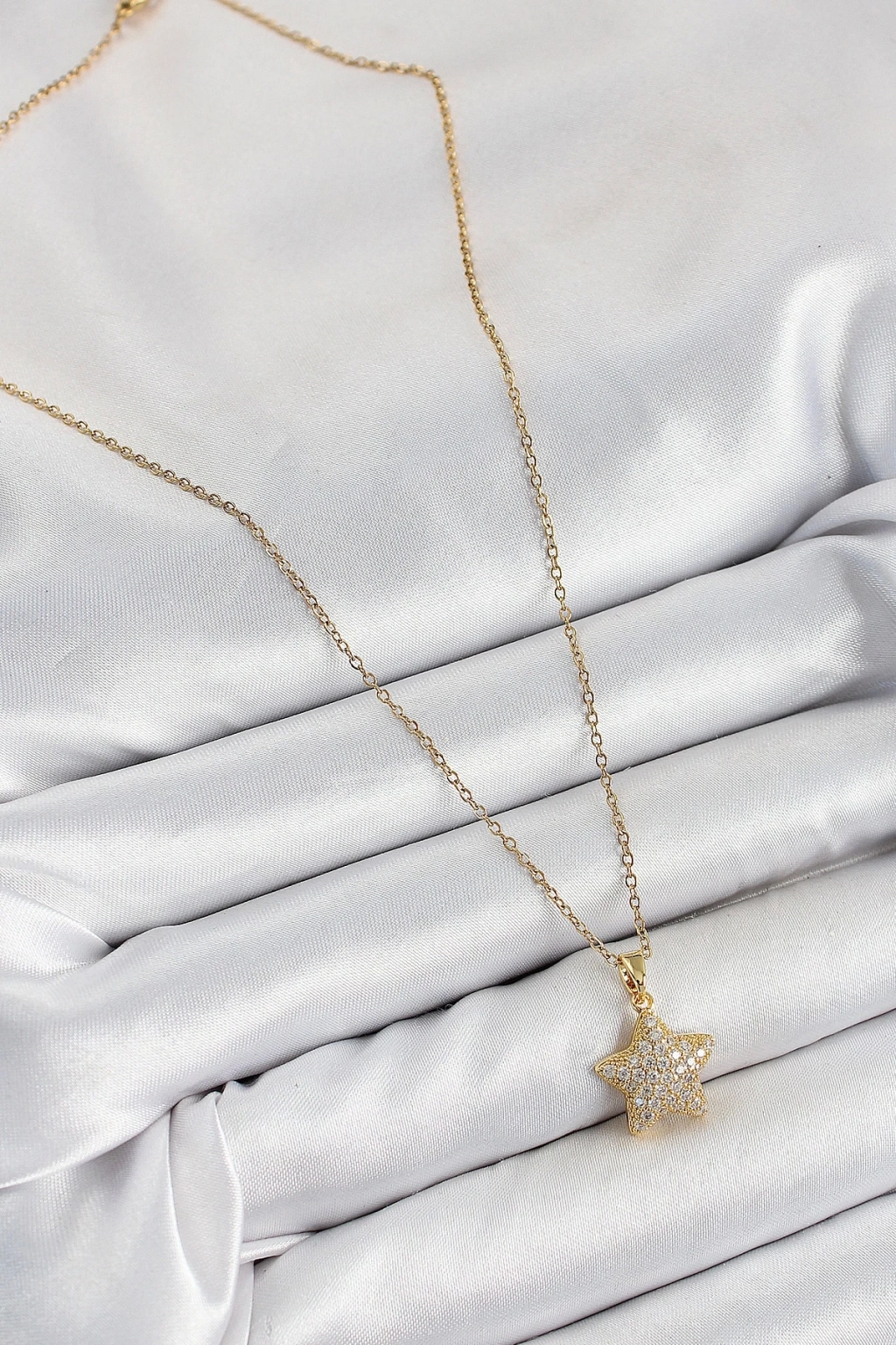 BFS 316L Çelik Zirkon Taşlı Yıldız Model Gold Renk Kadın Kolye