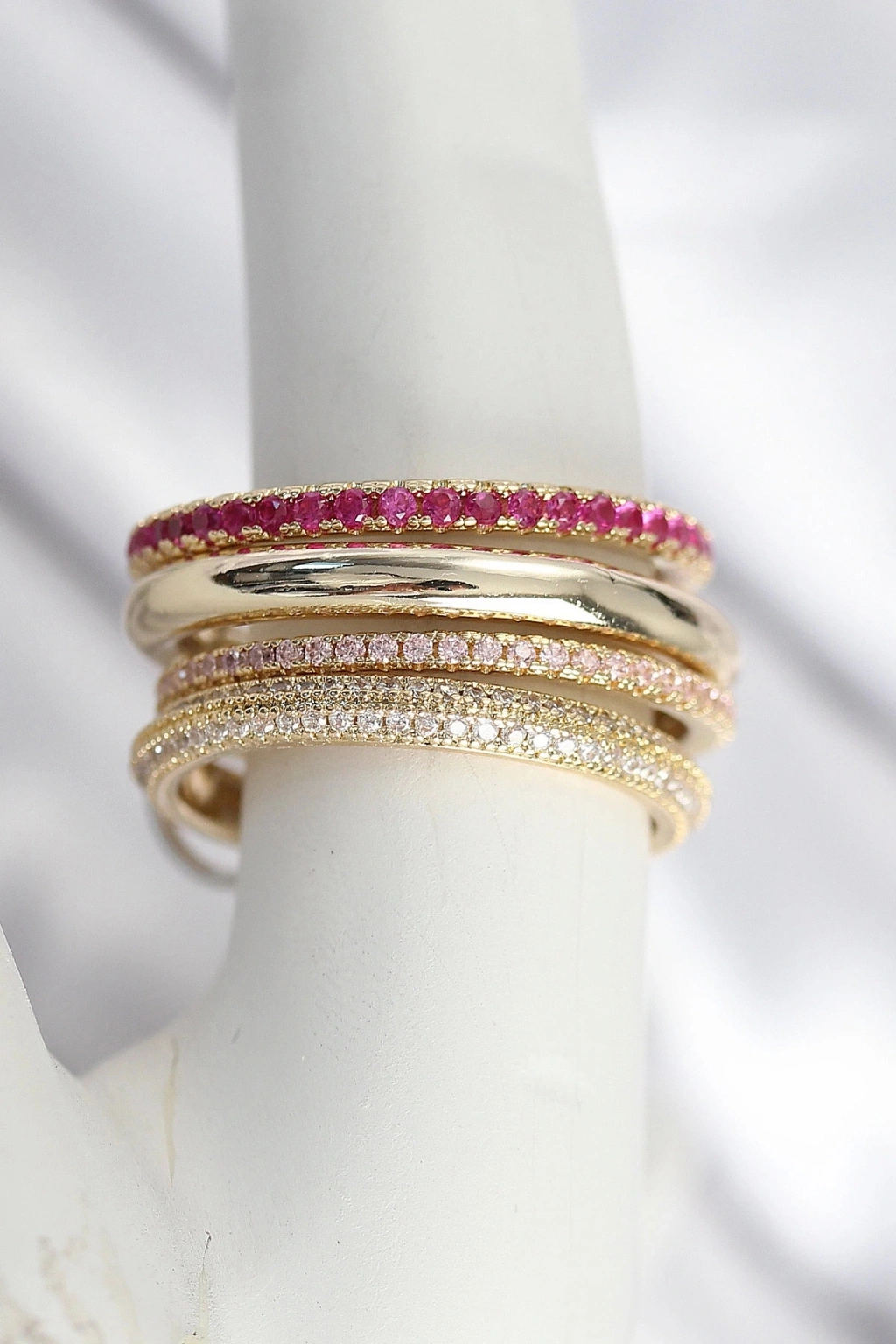 Bfs Pirinç Gold Renk Zirkon Taşlı 4'Lü Kadın Yüzük