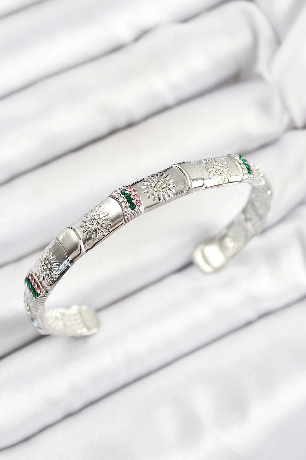 Bfs Pirinç Karışık Zirkon Taşlı Çiçek Model Gümüş Renk Altı Açık Kadın Bileklik