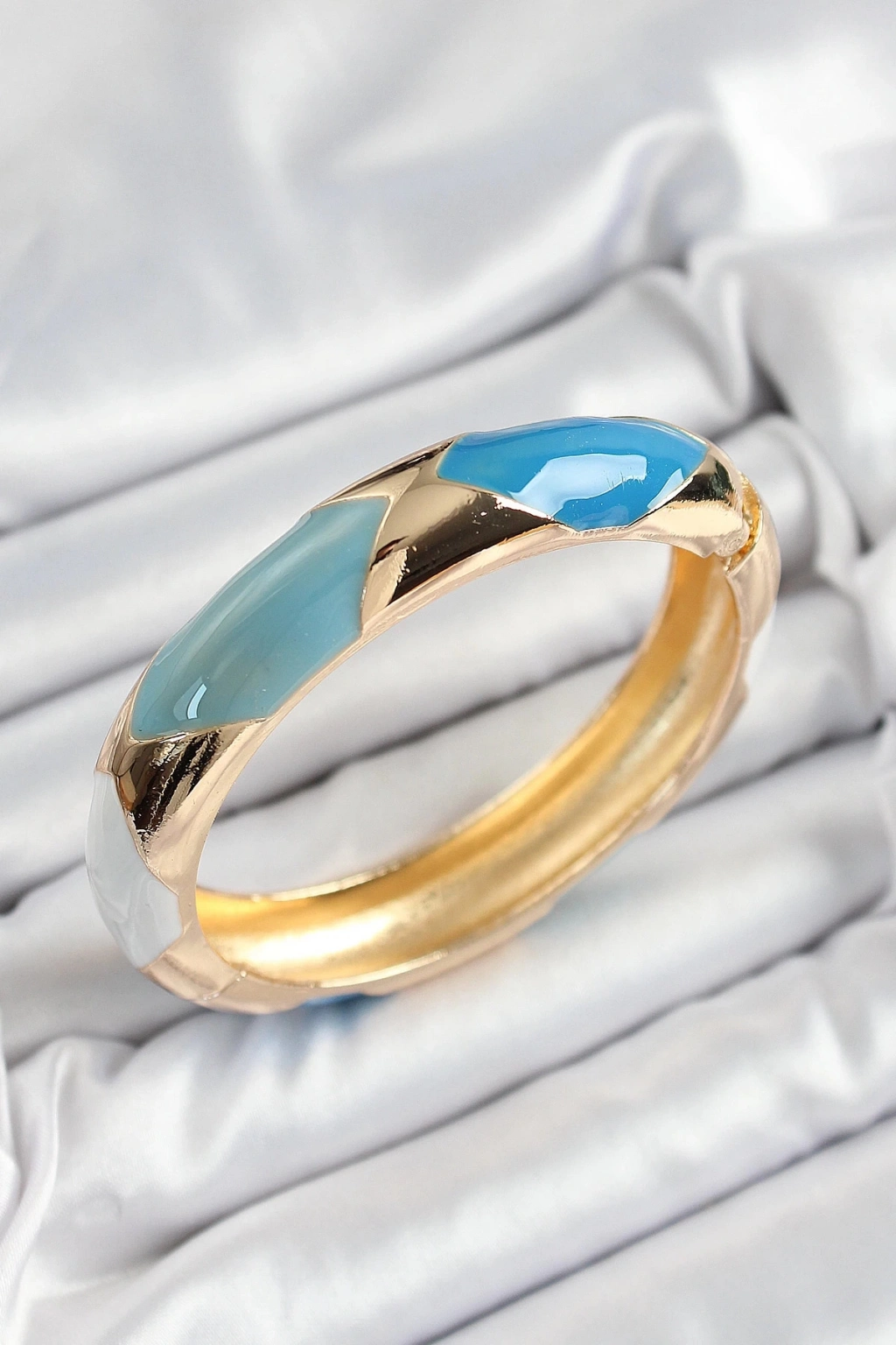 BFS Pirinç Mavi Beyaz Mineli Baklava Model Gold Renk Kadın Kelepçe