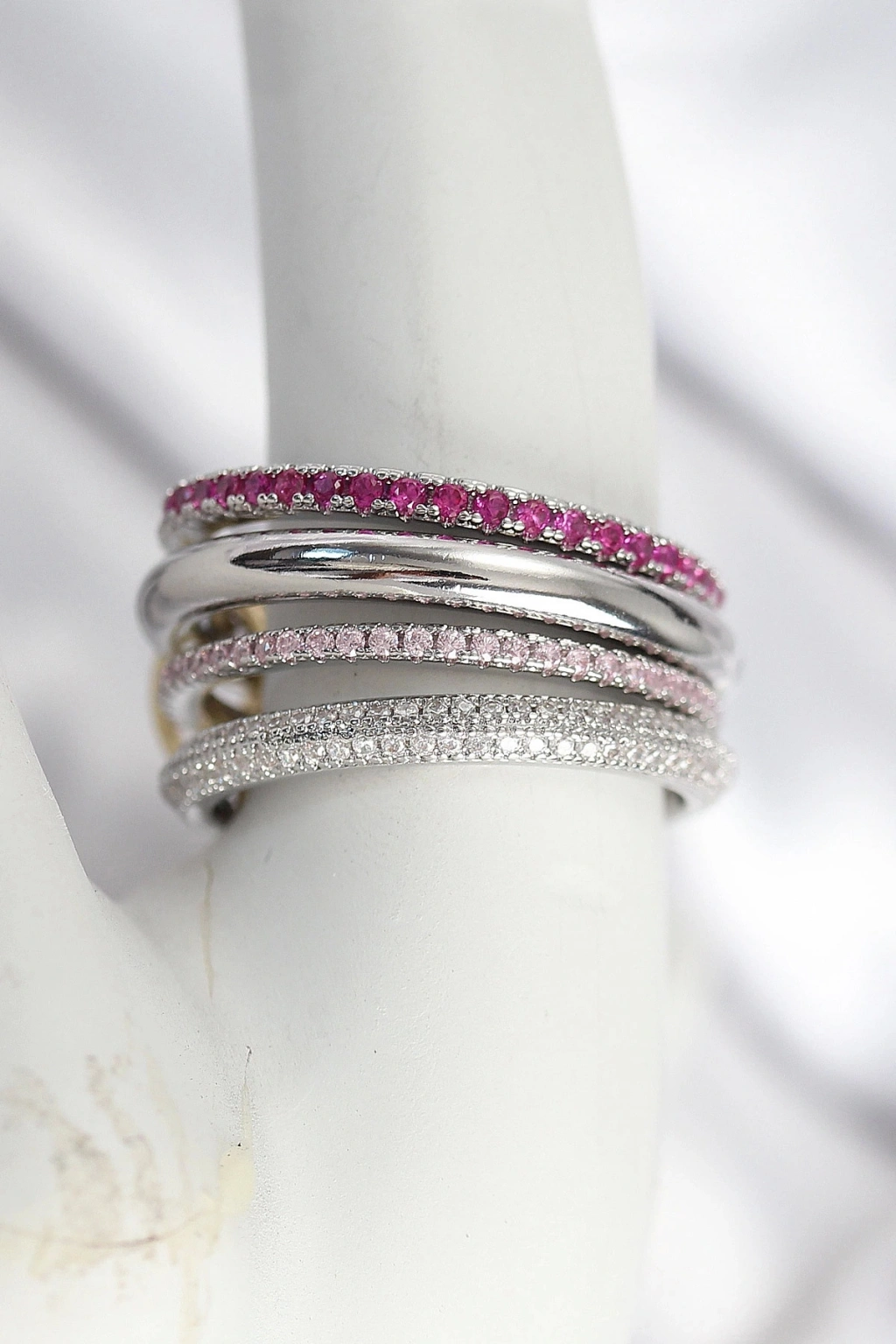 BFS Pirinç Mix Renk Zirkon Taşlı 4'Lü Kadın Yüzük