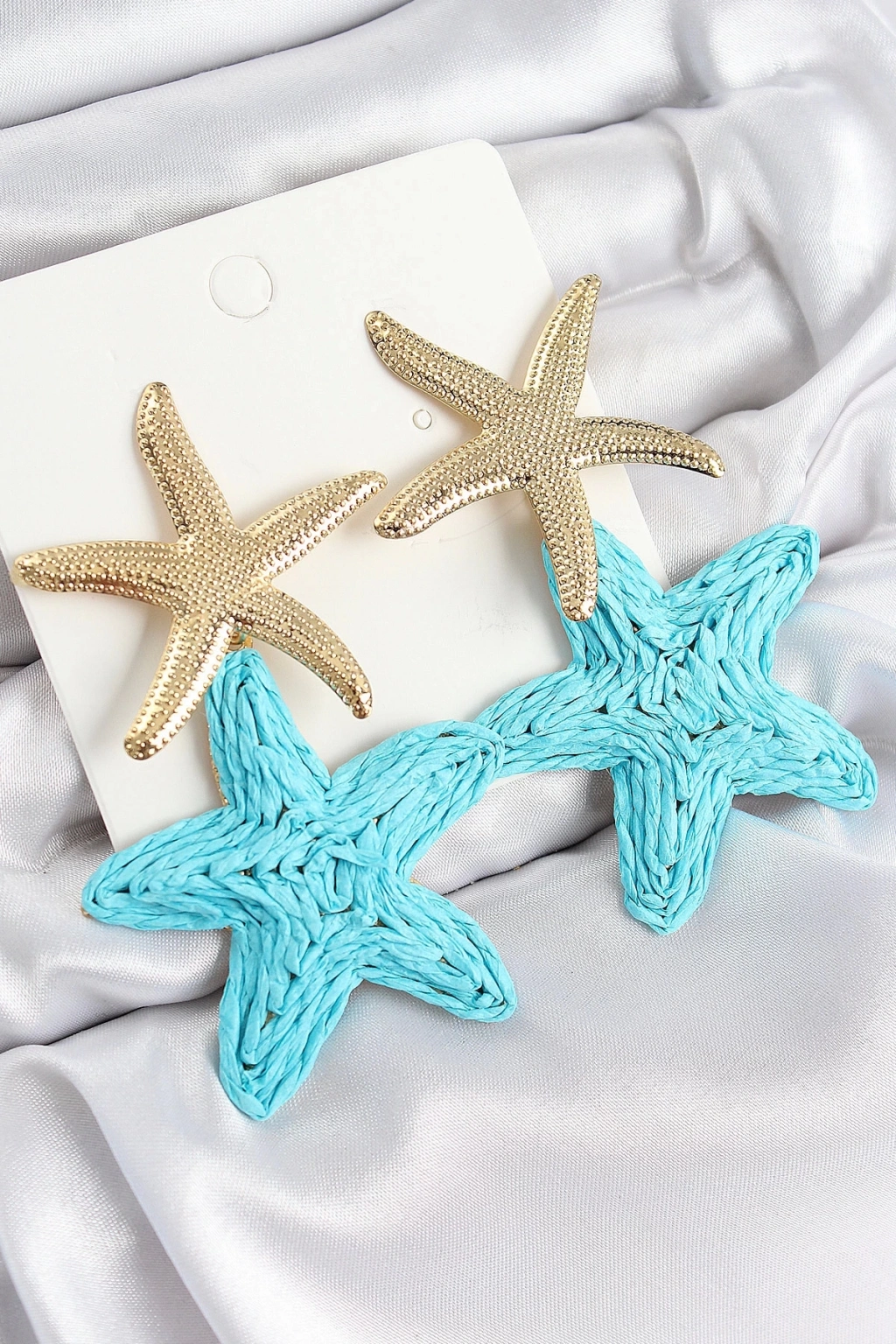 BFS Pirinç Sallantılı Turkuaz Deniz Yıldızı Model Gold Renk Hasır Küpe