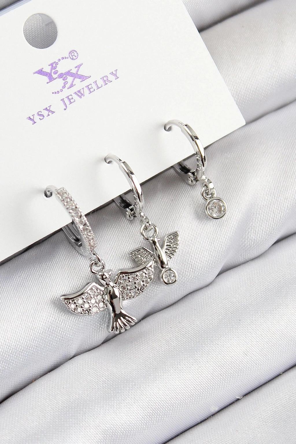 BFS Pirinç Zirkon Taşlı 3'lü Kuş Model Gümüş Renk Kadın Küpe