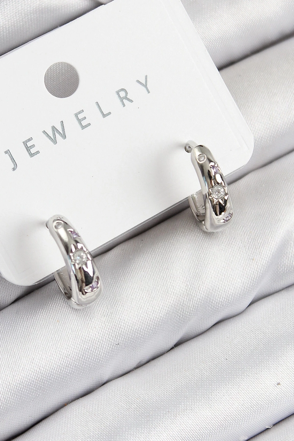 BFS Pirinç Zirkon Taşlı Halka Model Gümüş Renk Kadın Küpe