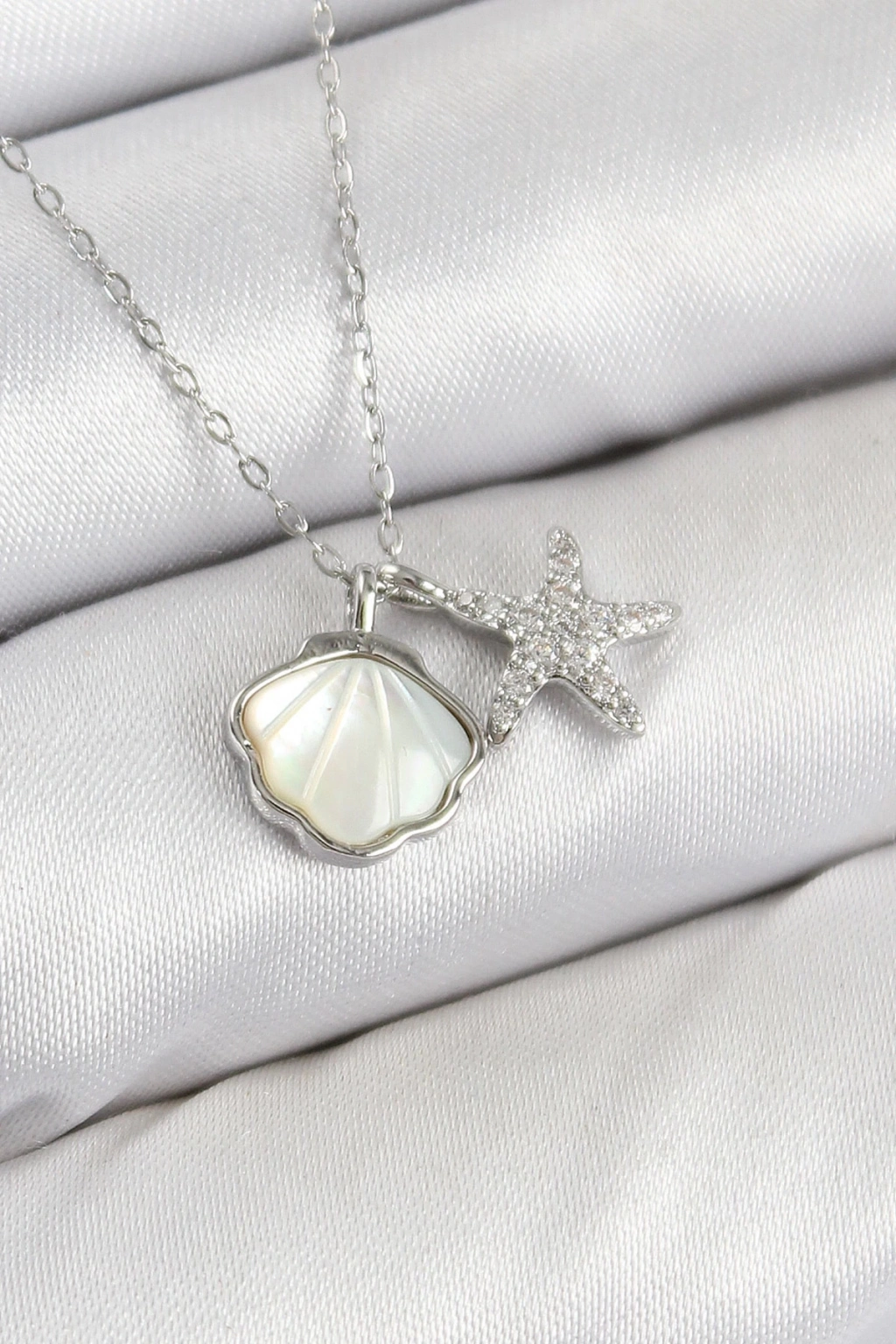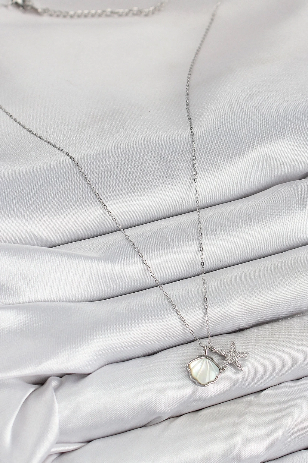 BFS Pirinç Zirkon Taşlı İstiridye Ve Deniz Yıldızı Model Gümüş Renk Kadın Kolye