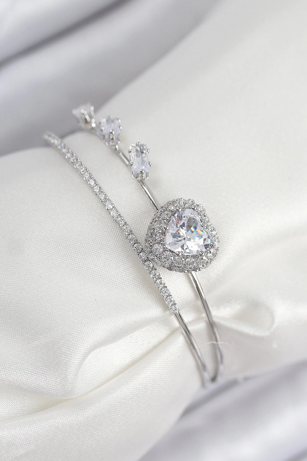 Bfs Pirinç Zirkon Taşlı Kalp Model Gümüş Renk Kadın Bileklik