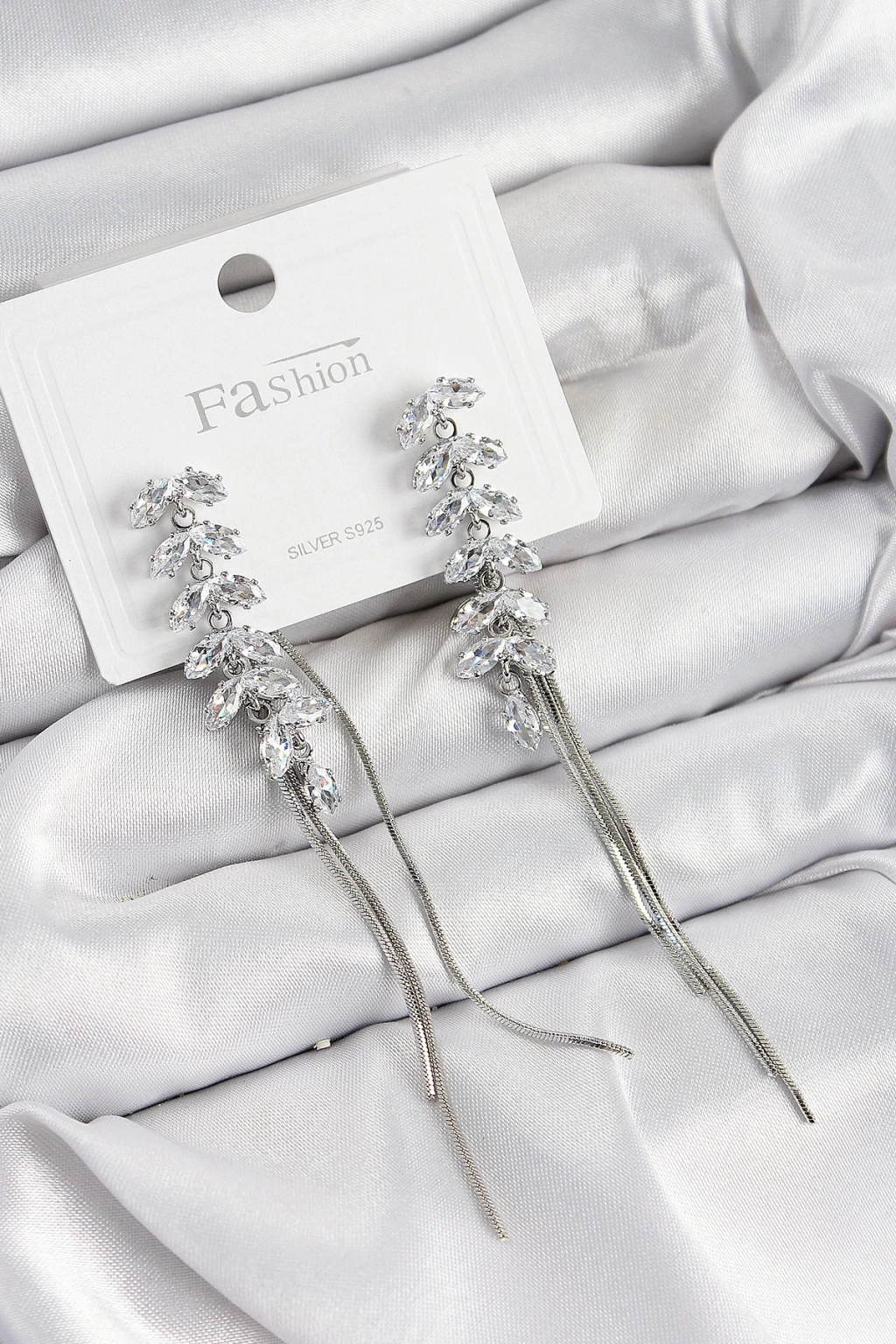 BFS Pirinç Zirkon Taşlı Sallantılı Model Gümüş Renk 925 Ayar Gümüş Çivi Kadın Küpe