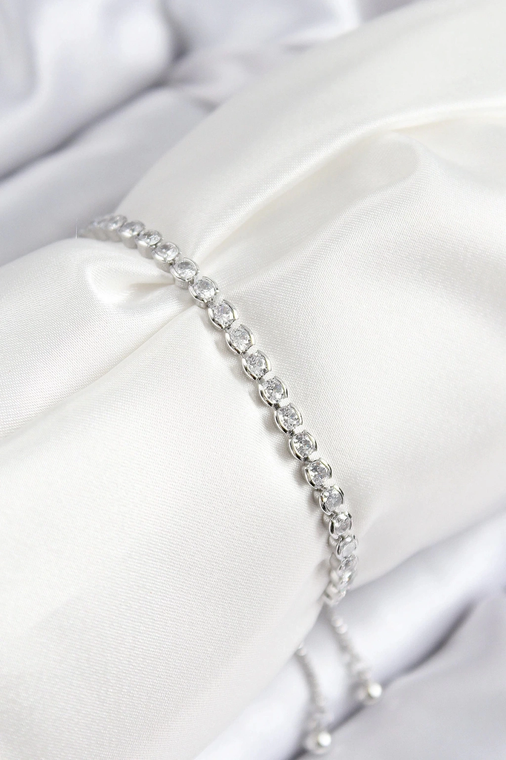 BFS Pirinç Zirkon Taşlı Sıralı Model Gümüş Renk Asansörlü Kadın Bileklik