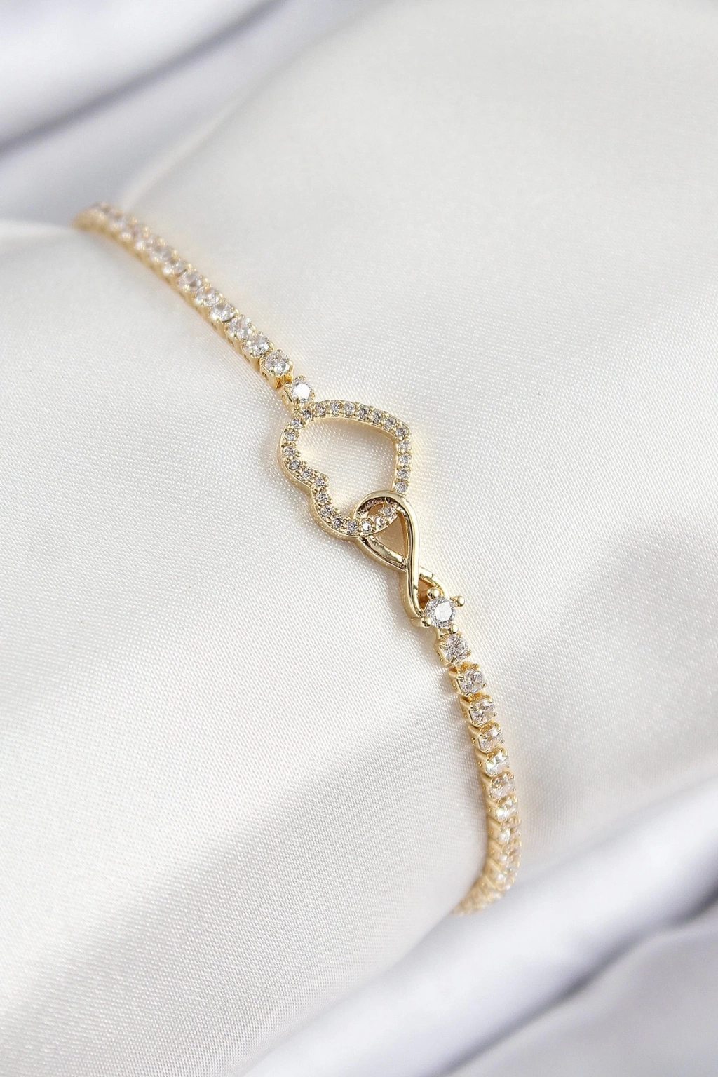 BFS Pirinç Zirkon Taşlı Sonsuzluk Kalp Model Gold Renk Kadın Bileklik