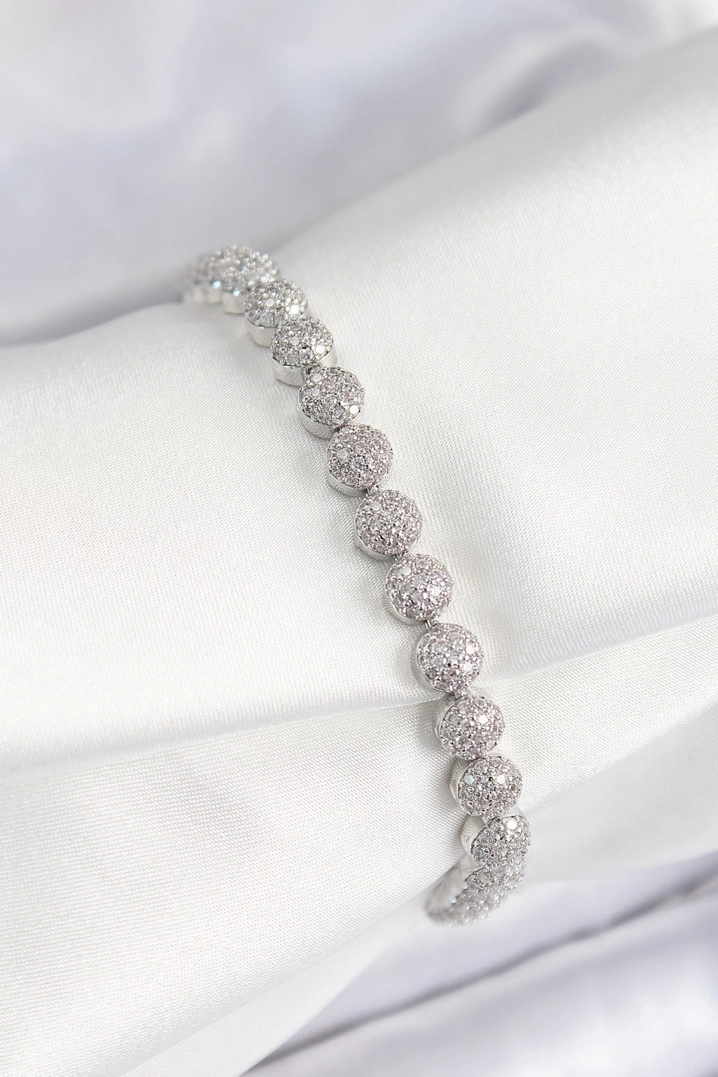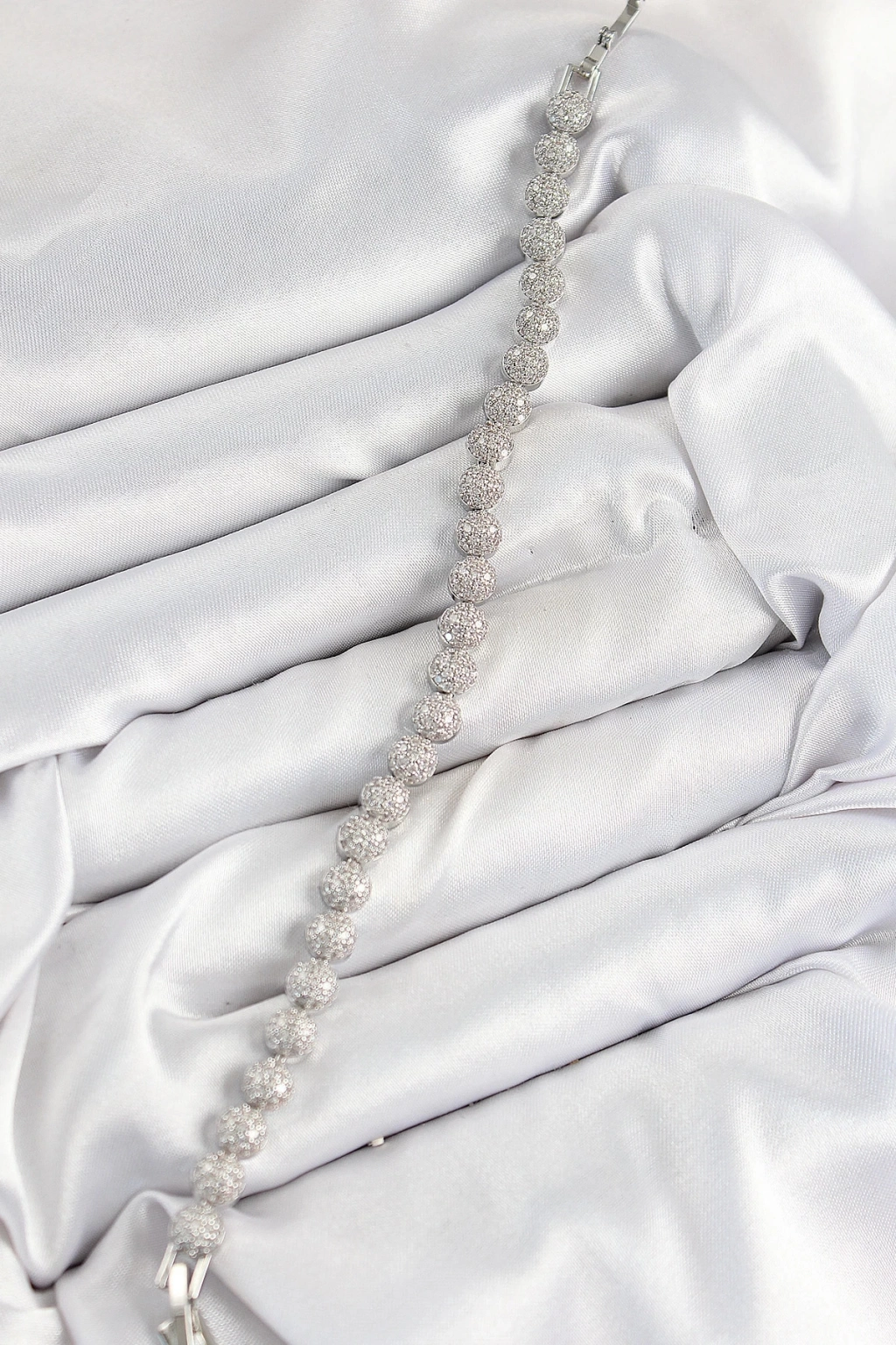 BFS Pirinç Zirkon Taşlı Yarım Topcuk Model Gümüş Renk VIP Seri Kadın Bileklik