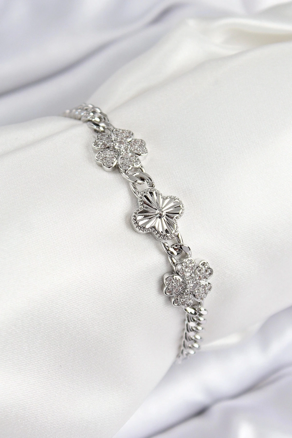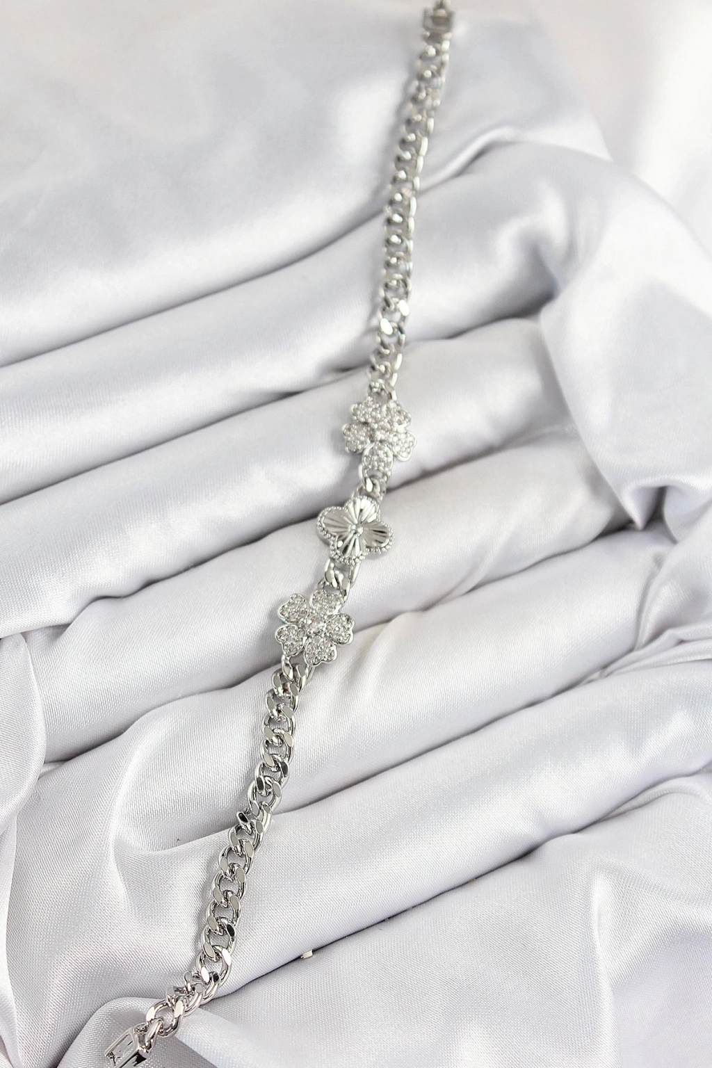 Bfs Pirinç Zirkon Taşlı Yonca Model Gümüş Renk Kadın Bileklik
