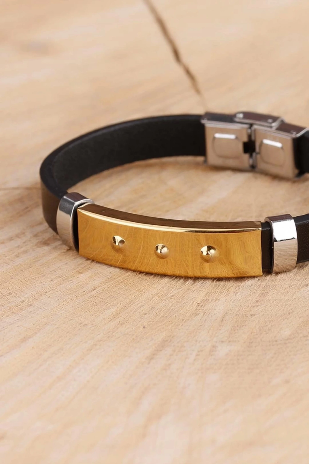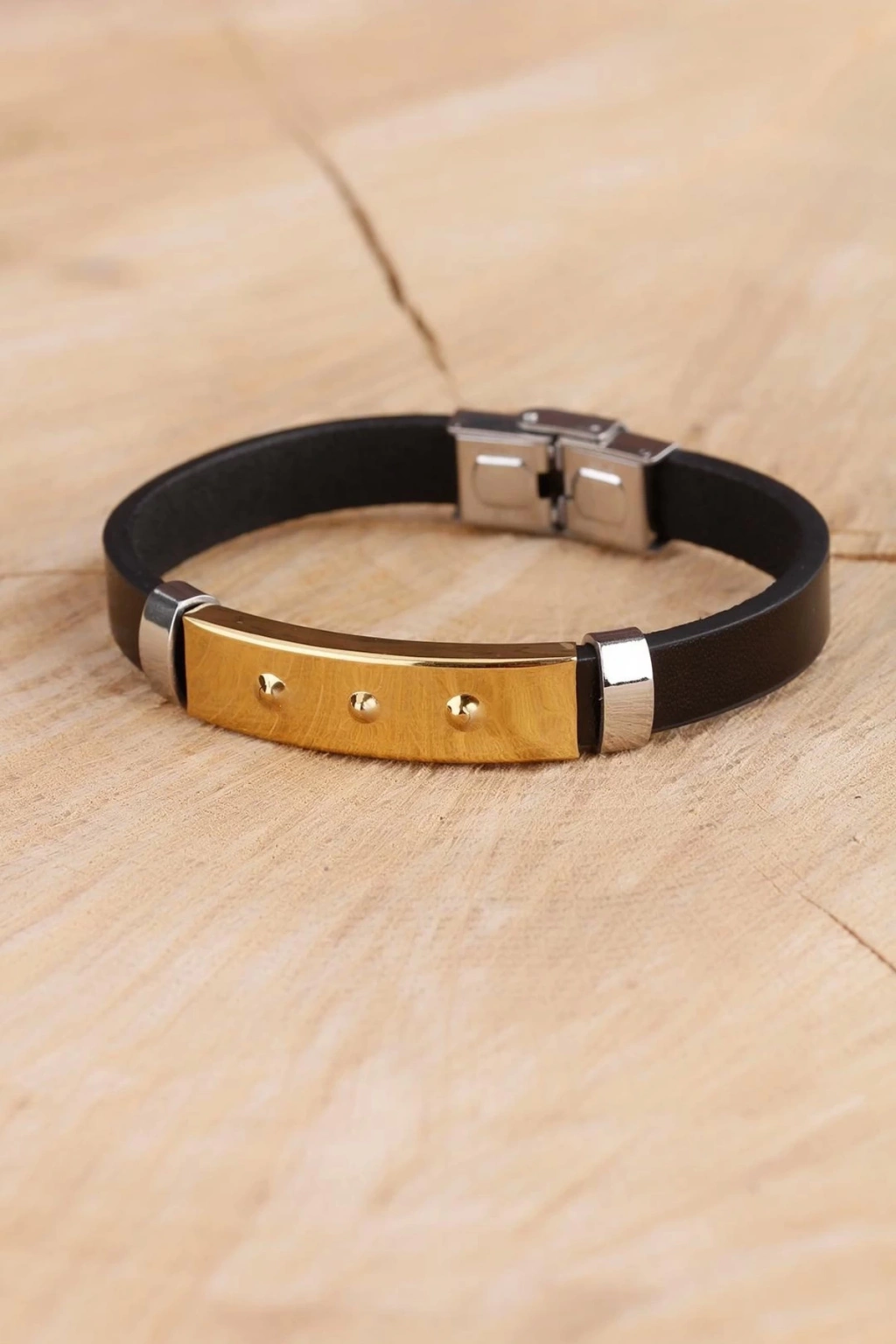 Sarı ve gri renk aksesuar ile detaylandırılan siyah silikon tasarım bileklik modeli ile kombinlerinizi hareketlendireceksiniz.; Siyah Silikon Çelik Aksesuar Tasarımlı Detaylı Erkek Bileklik ile spor bir şıklık elde edeceksiniz.