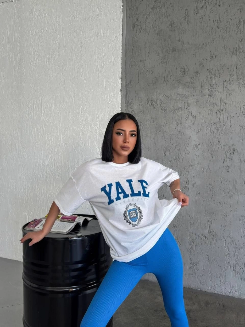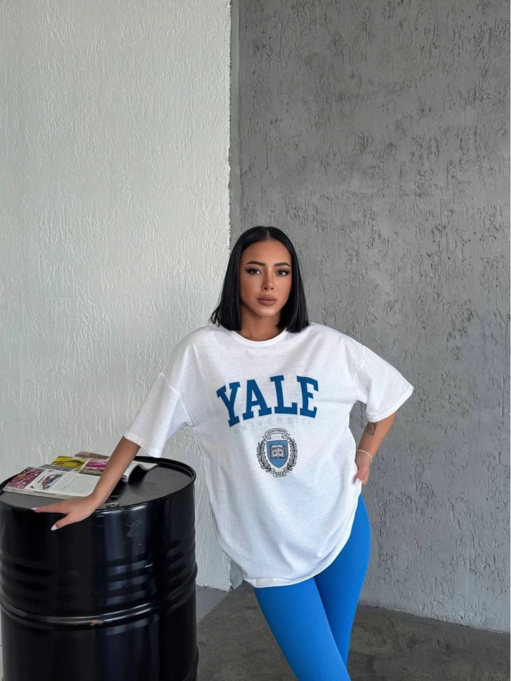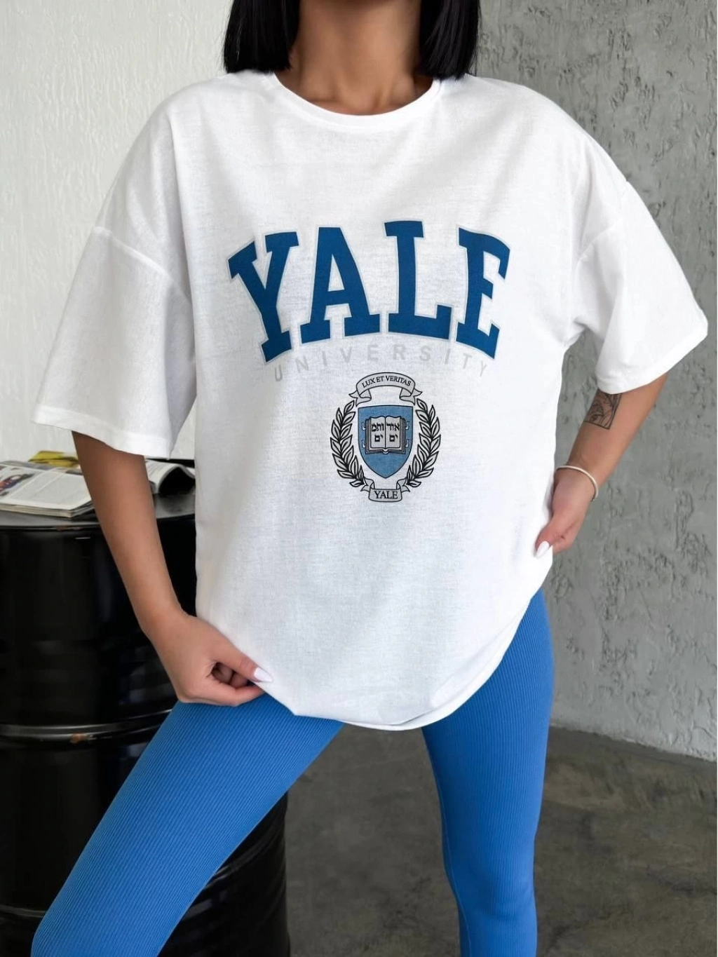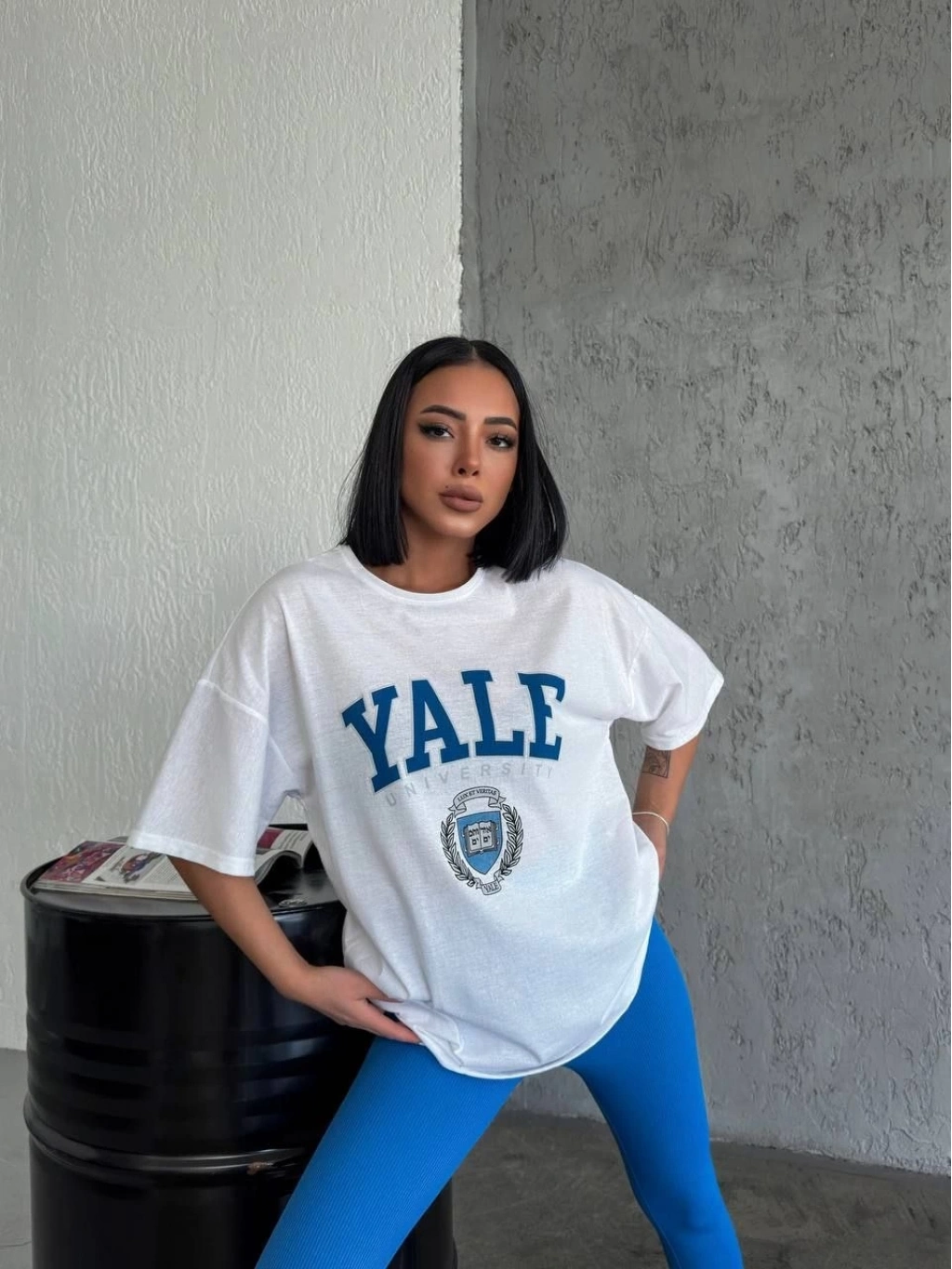 Bisiklet Yaka Baskılı Oversize T-Shirt - Beyaz