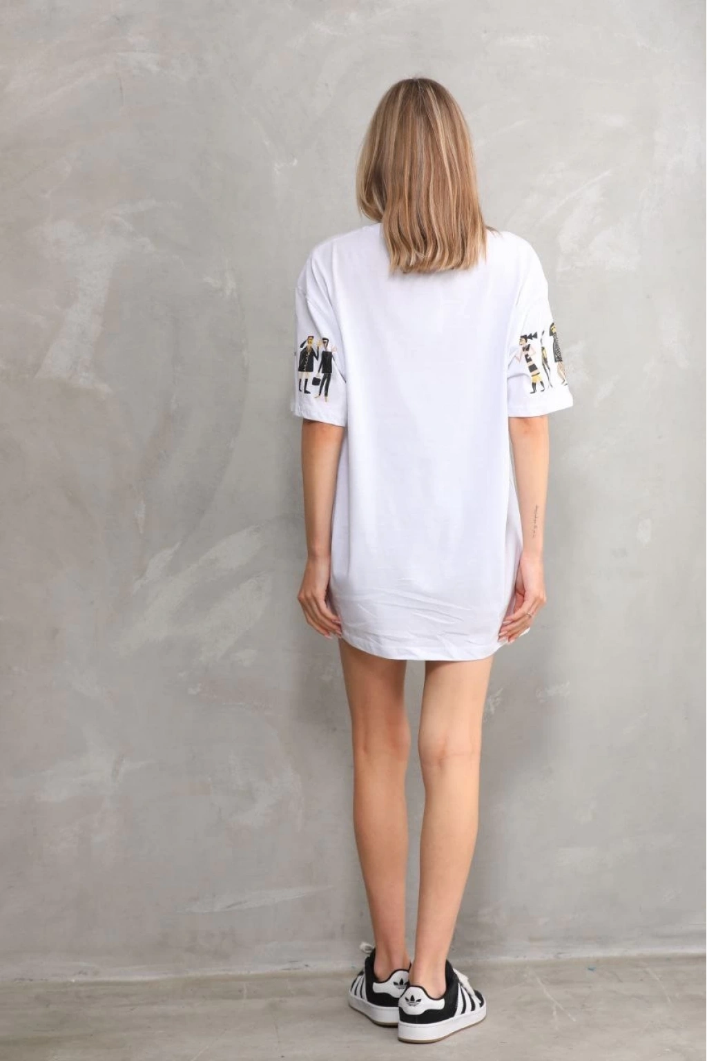 Bisiklet Yaka Baskılı Oversize T-Shirt - Beyaz -