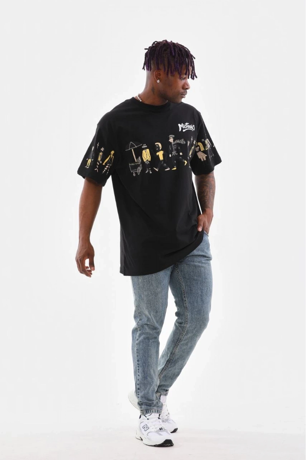 Bisiklet Yaka Baskılı Oversize T-Shirt - Siyah -