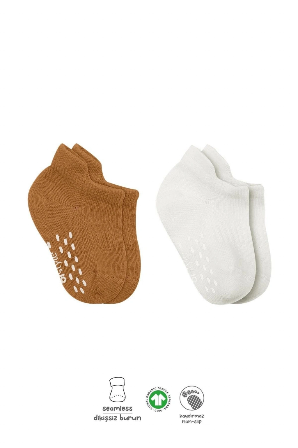 Bistyle 2'Li Sneakers Kaymaz Colours Penye Çorap BS20104 Ekru Hardal
