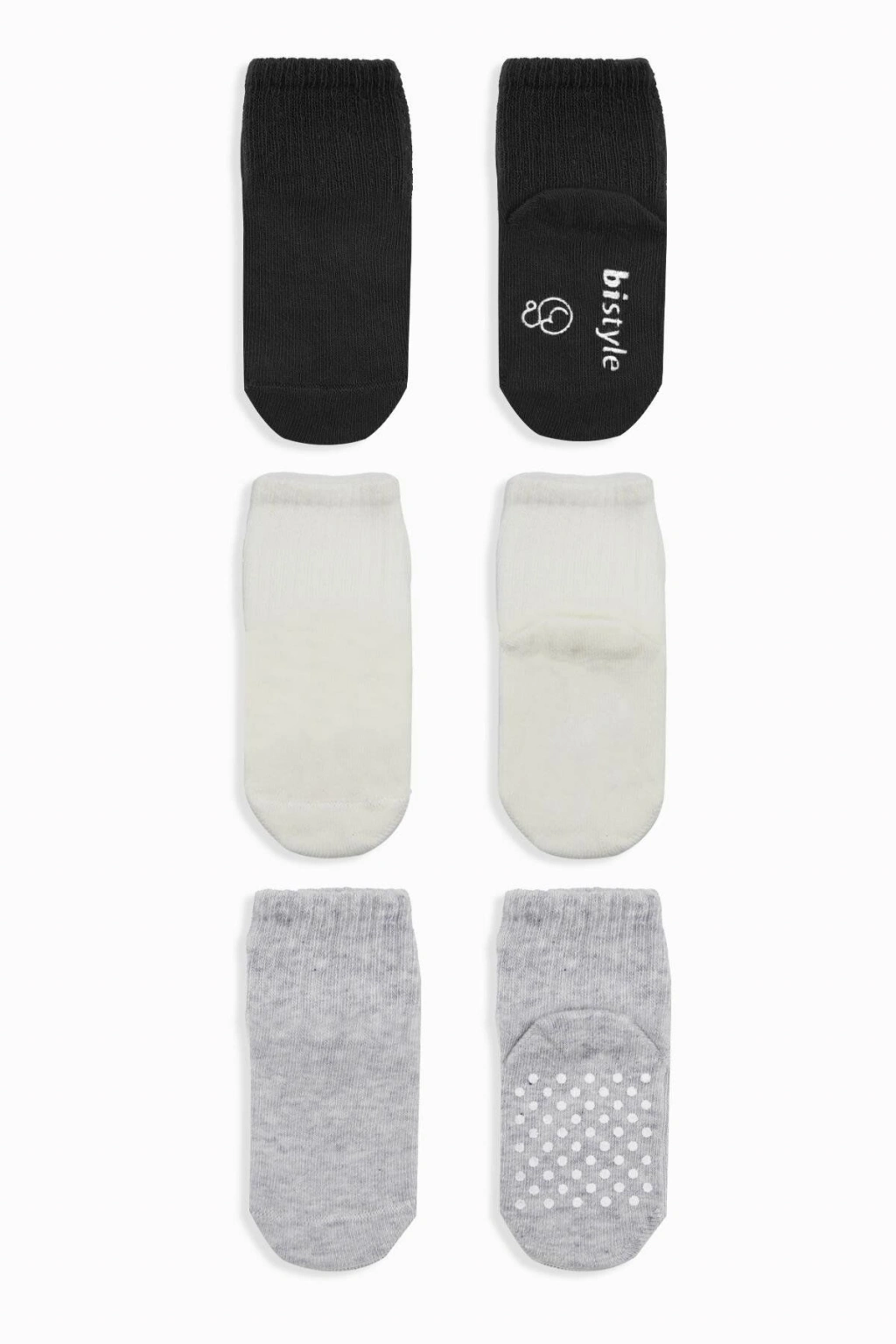 Bistyle Basic Kaymaz Penye Soket Çorap 3'Lü BS10107 Siyah Ekru Gri