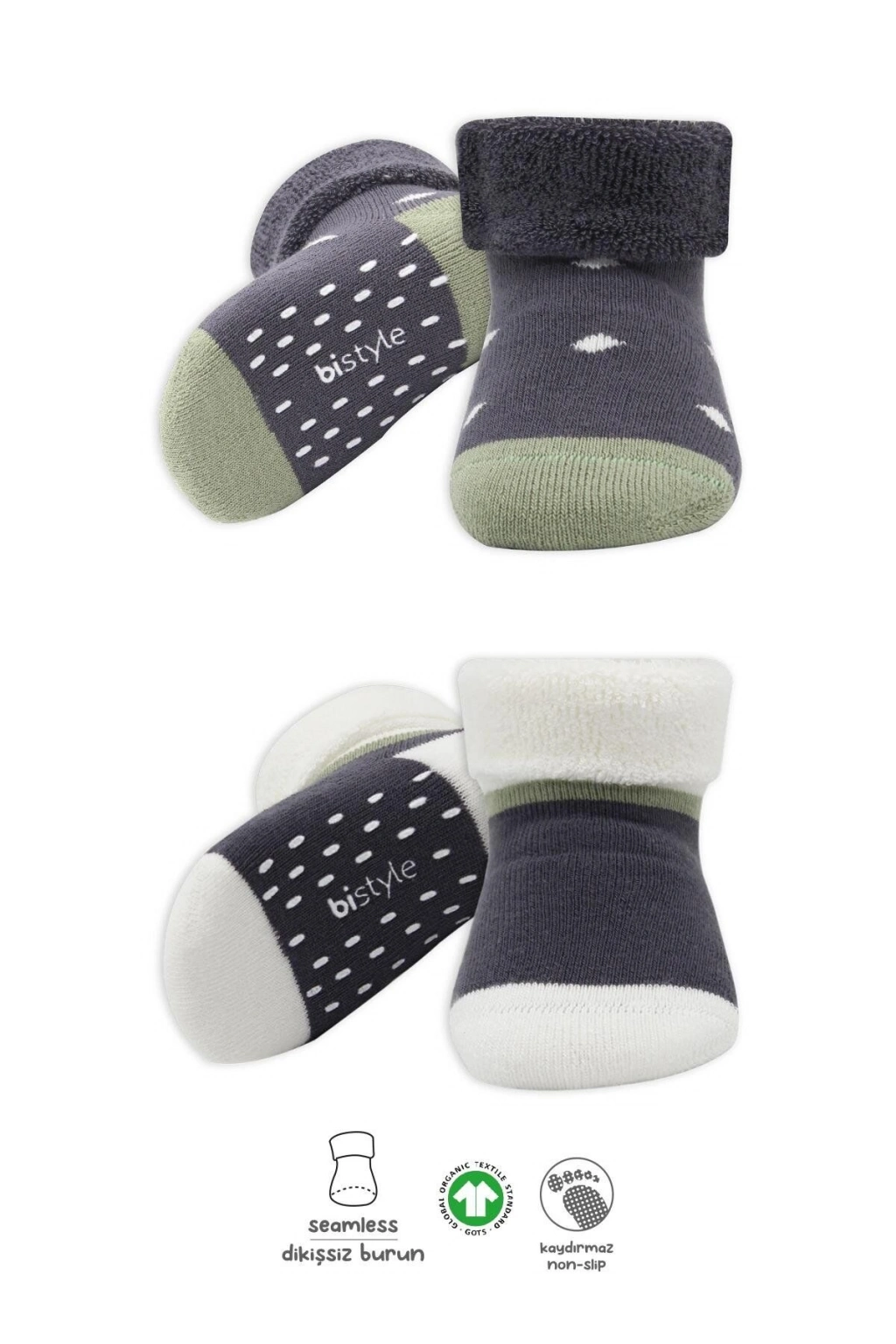 Bistil Organik Kız Erkek Bebek Kaydırmaz Baskılı Dikişsiz Kıvrık Havlu Soket 2li Çorap Renkli Havlu Çorap Bebek Havlu Çorap Soket Çorap Kaydırmaz Çorap Kayrdırmazlı Burnu Dikişsiz Kokulu Pamuklu Yumuşak Antialerjik