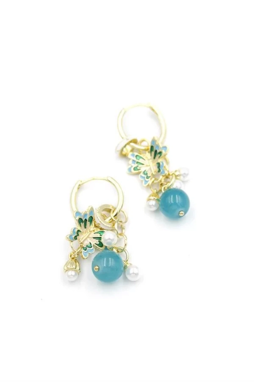Boncuklu Kelebek Küpe - Turkuaz