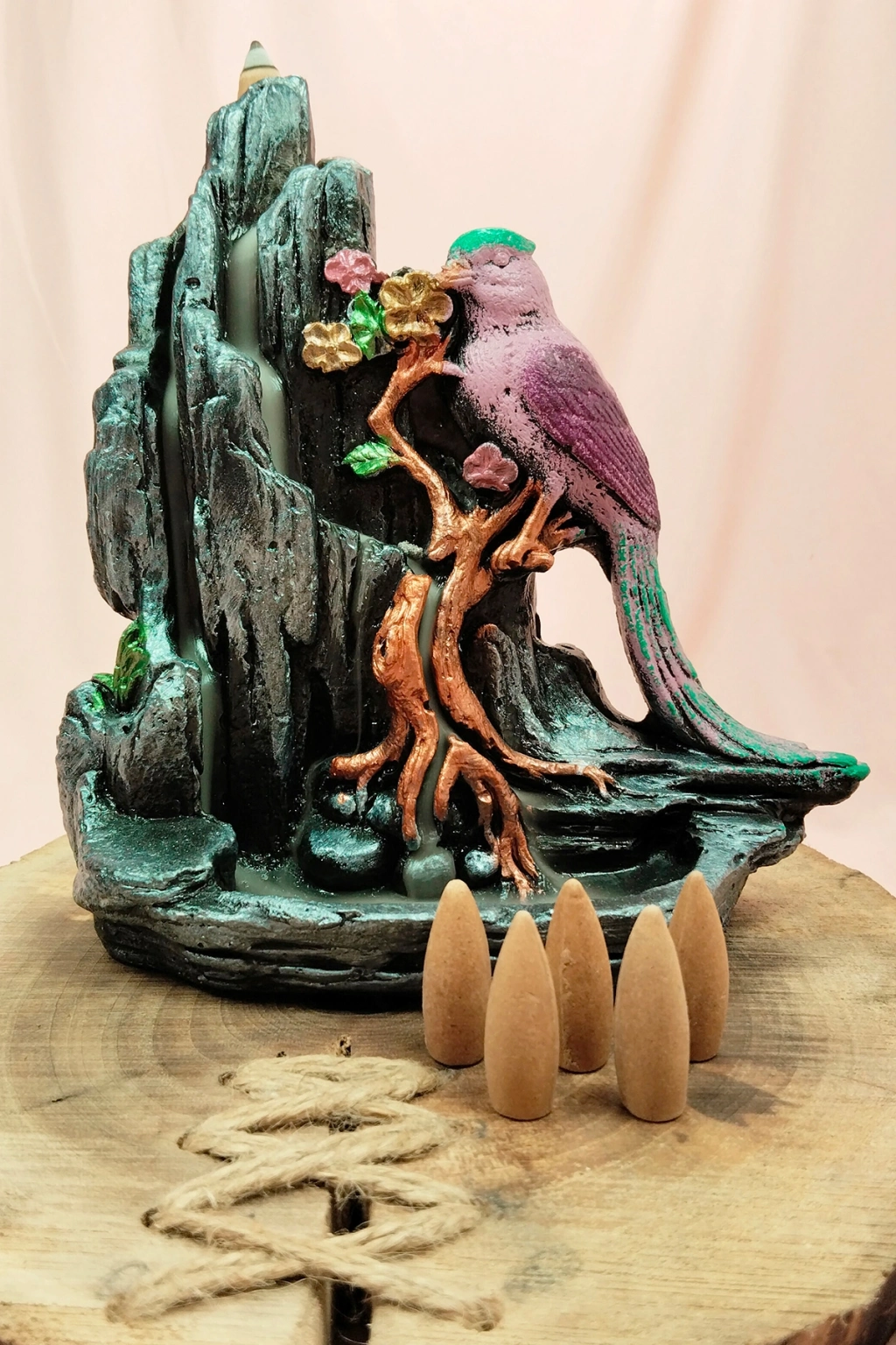Buyuk Boy Kuş Figürlü Biblo Model Geri Akış Şelale Tütsülük 5 Adet Koni Hediye