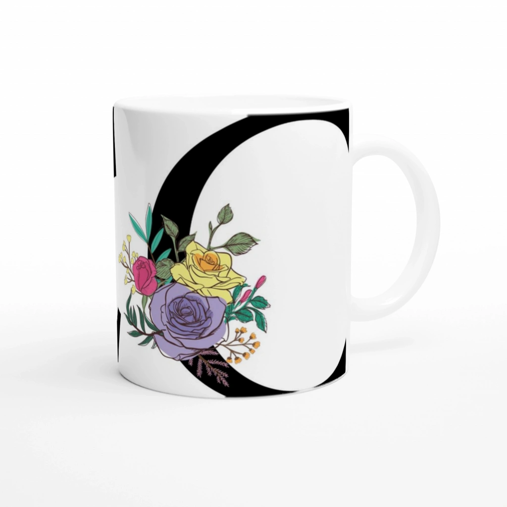 C Harfi Çizgisel Çiçekli Kupa Bardak