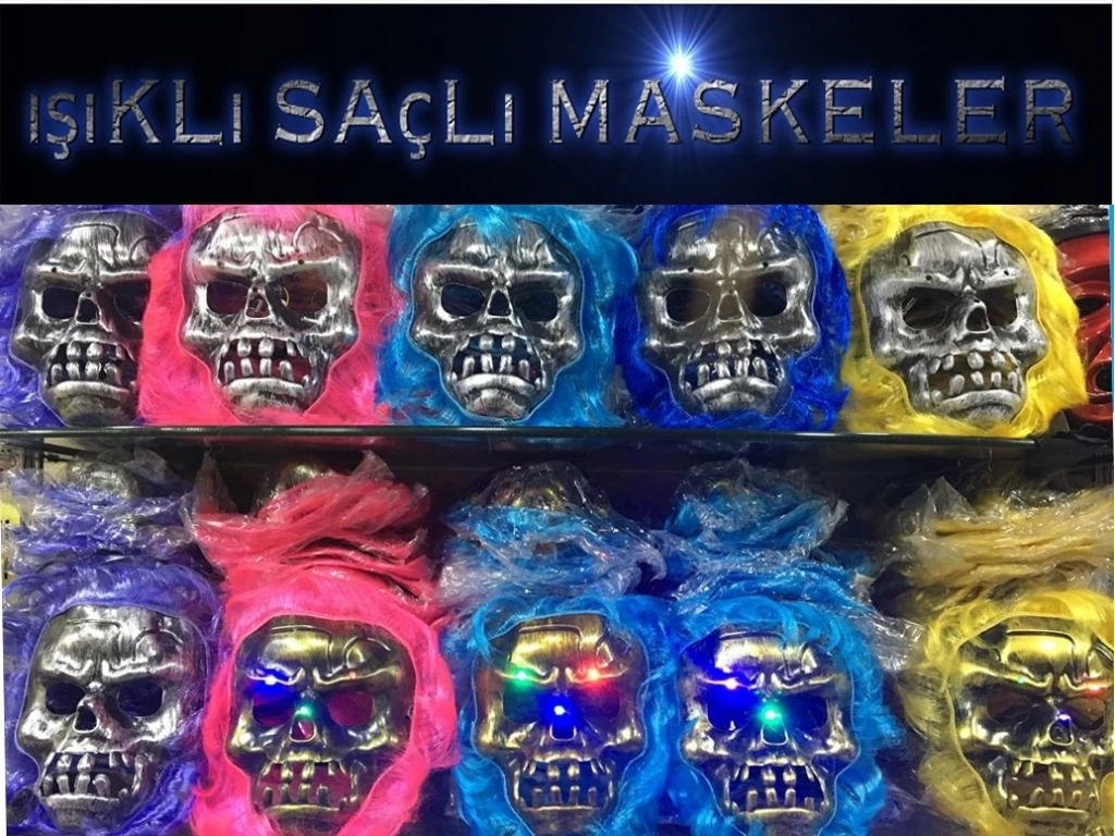 Cadılar Bayramı Işıklı Halloween Kuru Kafa Maskesi 1 Adet Karışık Renk