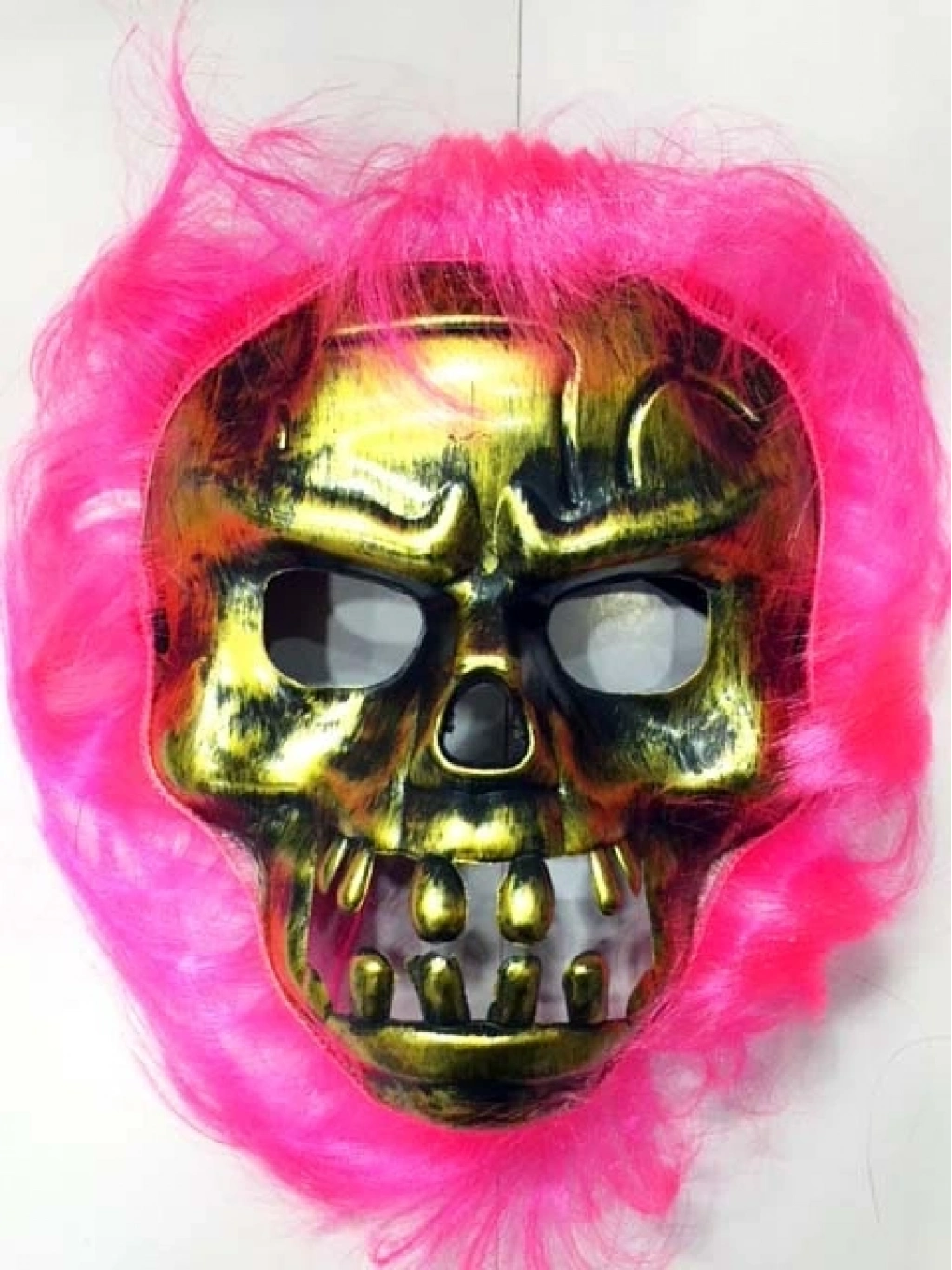 Maskenin etrafı pembe saçlarla çevrilmiştir
