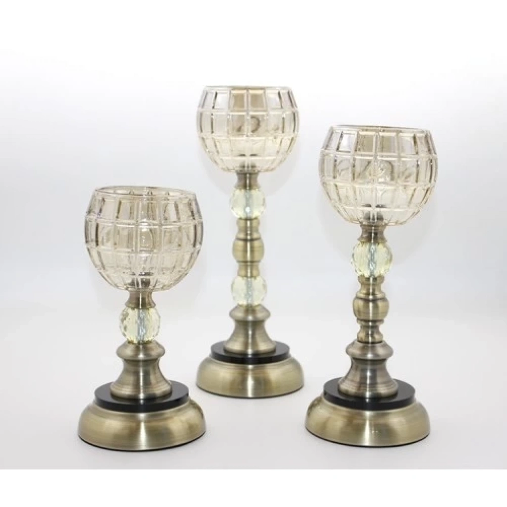CAM 3'LÜ ŞAMDANÜrün ÖzellikleriCam 3'lü Şamdan seti, zarif tasarımı ve şık cam detaylarıyla ev dekorasyonunuza zarafet katacak bir üründür. 33 cm, 27 cm ve 22 cm boyutlarında üç farklı yükseklikte şamdandan oluşan bu set, mum ışığının ambiyansını artırarak dekoratif bir görünüm sunar. Metalik detaylarla tamamlanan şamdanlar, klasik ve modern dekorasyonlarla uyum sağlar. Salon, yemek masası, yatak odası veya özel günlerde sofralarınızda şıklık yaratmak için idealdir.Paket İçeriği1 Adet 33 cm Şamdan1 Adet 27 cm Şamdan1 Adet 22 cm Şamdan
