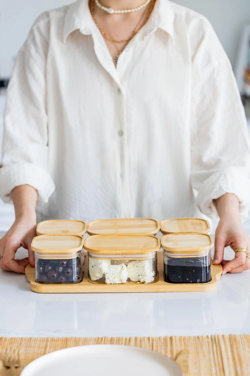 • 13 parçalık cam kahvaltılık seti, şeffaf cam yapısıyla kahvaltı sofralarına şıklık katar.