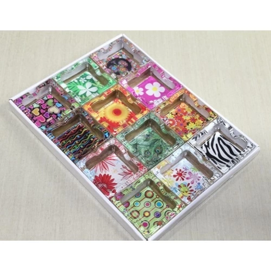 CAM KÜLLÜK MODEL 33Ürün ÖzellikleriCam küllük model 33, renkli çiçek desenleri ve zarif tasarımı ile dikkat çekiyor. Şık ve renkli görünümü ile her mekanda öne çıkar. Yüksek kaliteli cam malzeme kullanılarak üretilmiştir ve şıklığıyla her türlü yaşam alanına uyum sağlar. Bu model, şıklık ve fonksiyonelliği bir arada sunarak, ev, ofis veya barlar gibi birçok alanda kullanılabilir.Paket İçeriği1 Adet Cam Küllük Model 33
