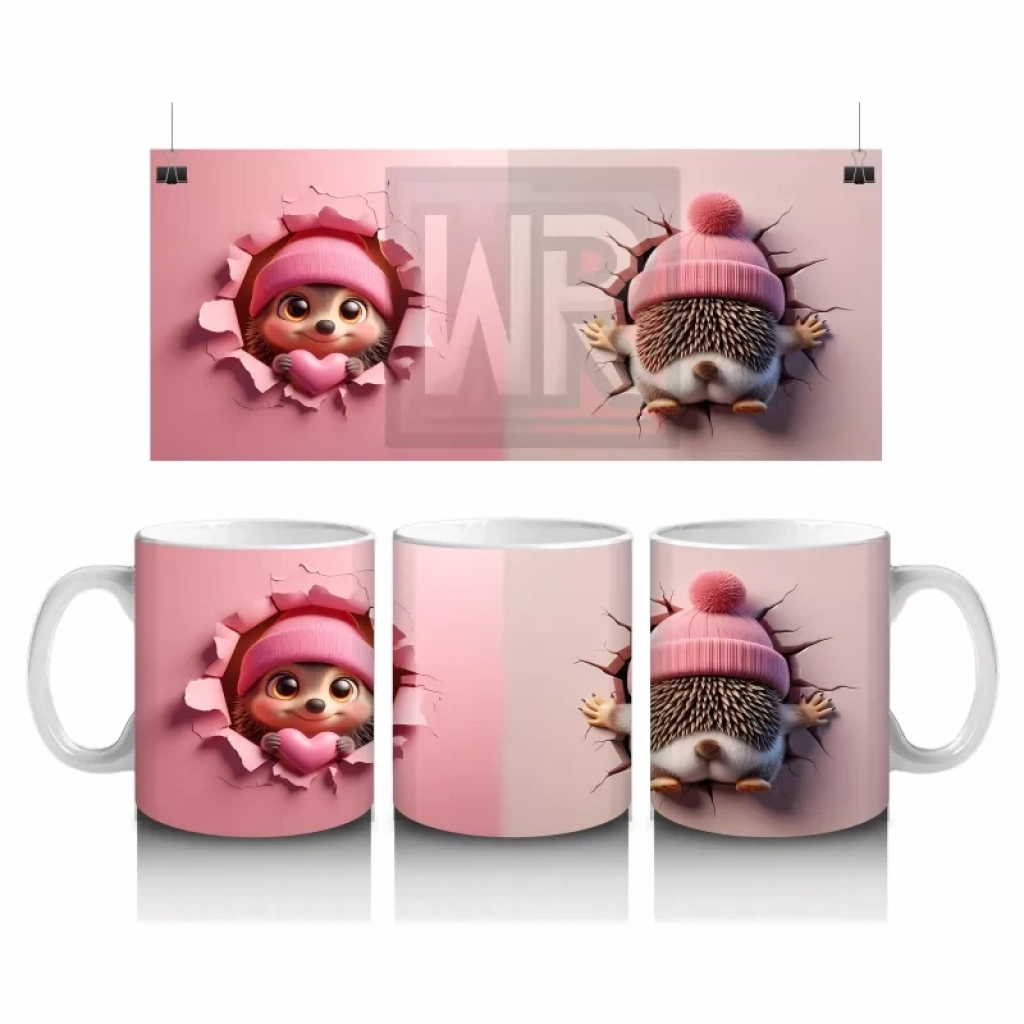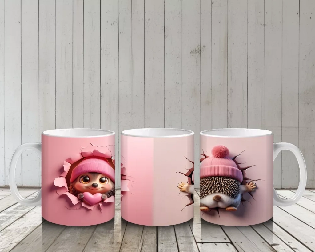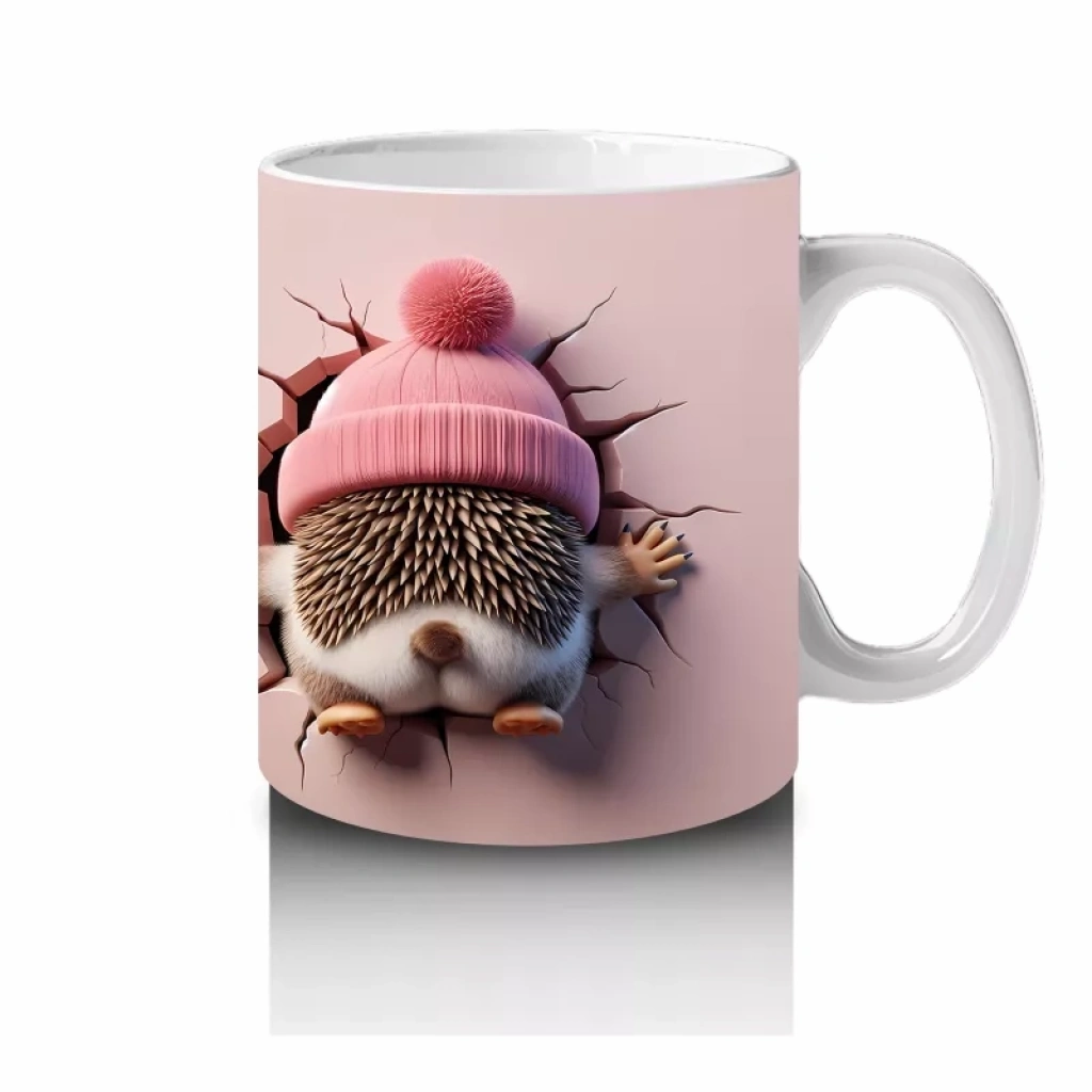 Çatlak duvarın arasından gülümseyerek bakan oyuncak kirpi, eğlenceli ve içten bir enerji yayıyor. Mizahi ve sevimli figürleri sevenler için neşeli bir tasarım.