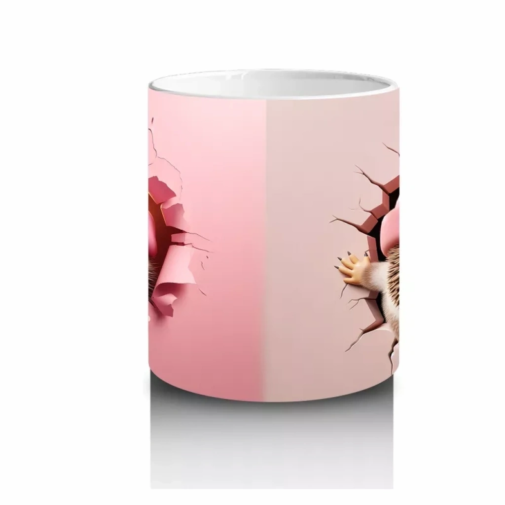 Çatlak Duvar Arasında Gülümseyen Oyuncak Kirpi – Baskılı Kahve Kupası
