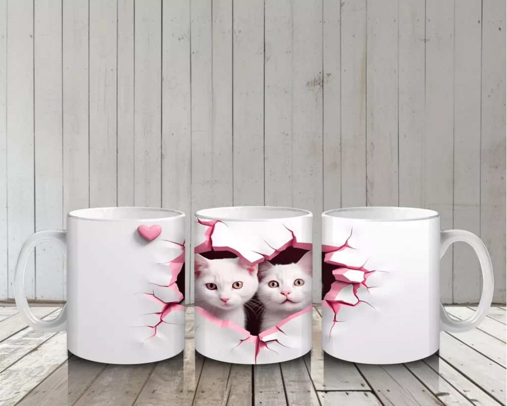 Duvarın arkasından merakla bakan bu sevimli kedi kardeşler, kahve saatlerinize neşe katacak! Kediseverler için sıcacık bir hediye alternatifi.