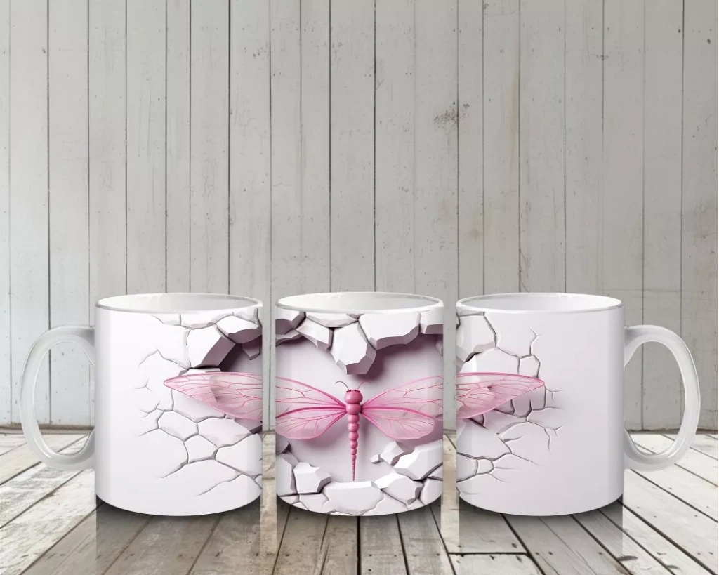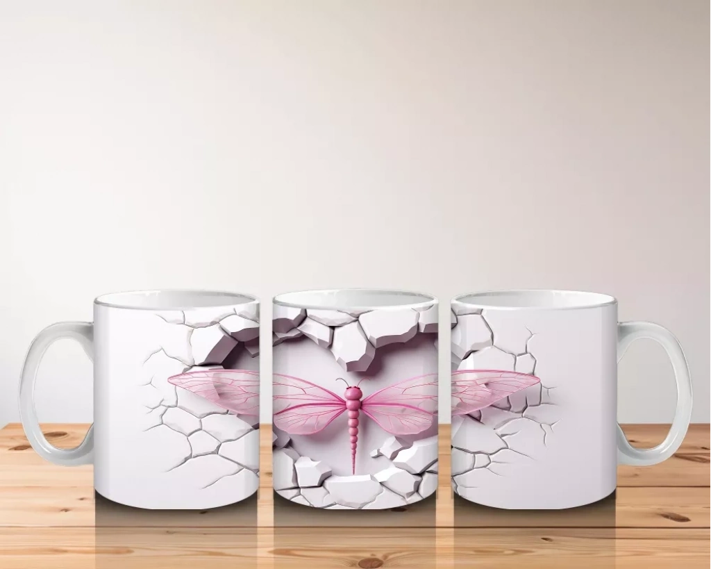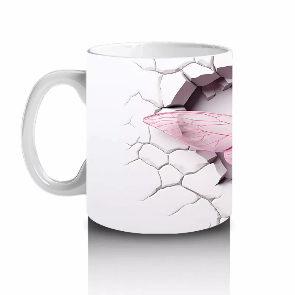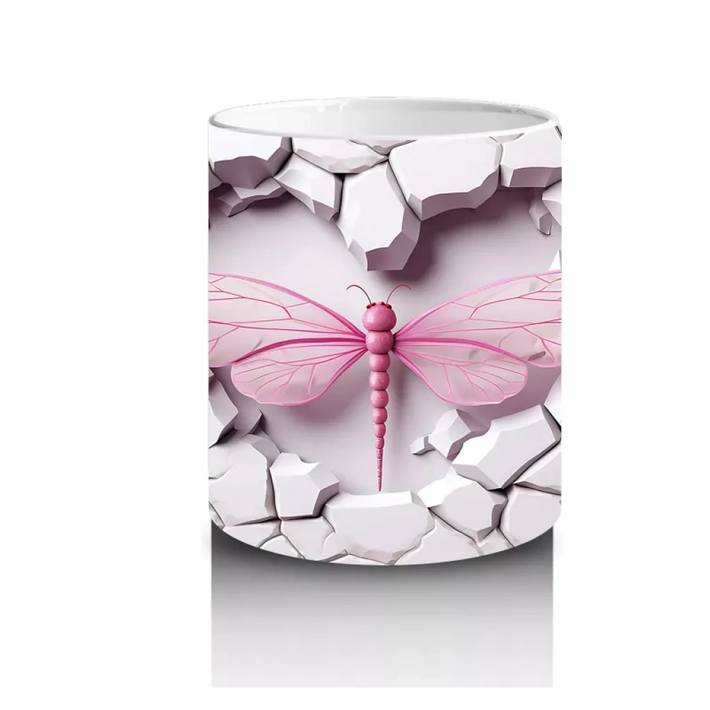 Çatlak Duvarda Kalp Şeklinde Pembe Yusufçuk – Baskılı Kahve Kupası