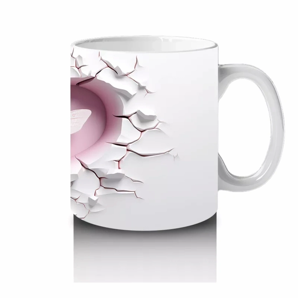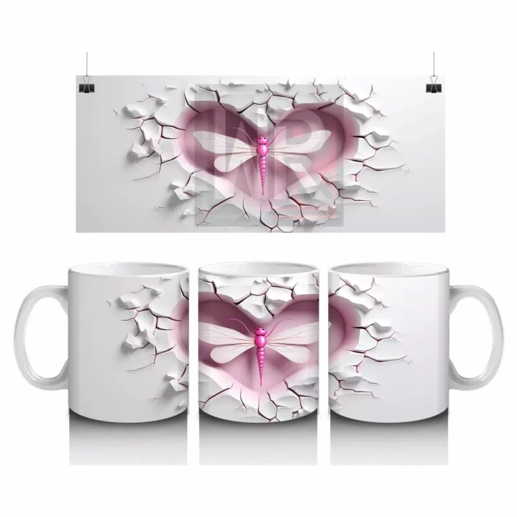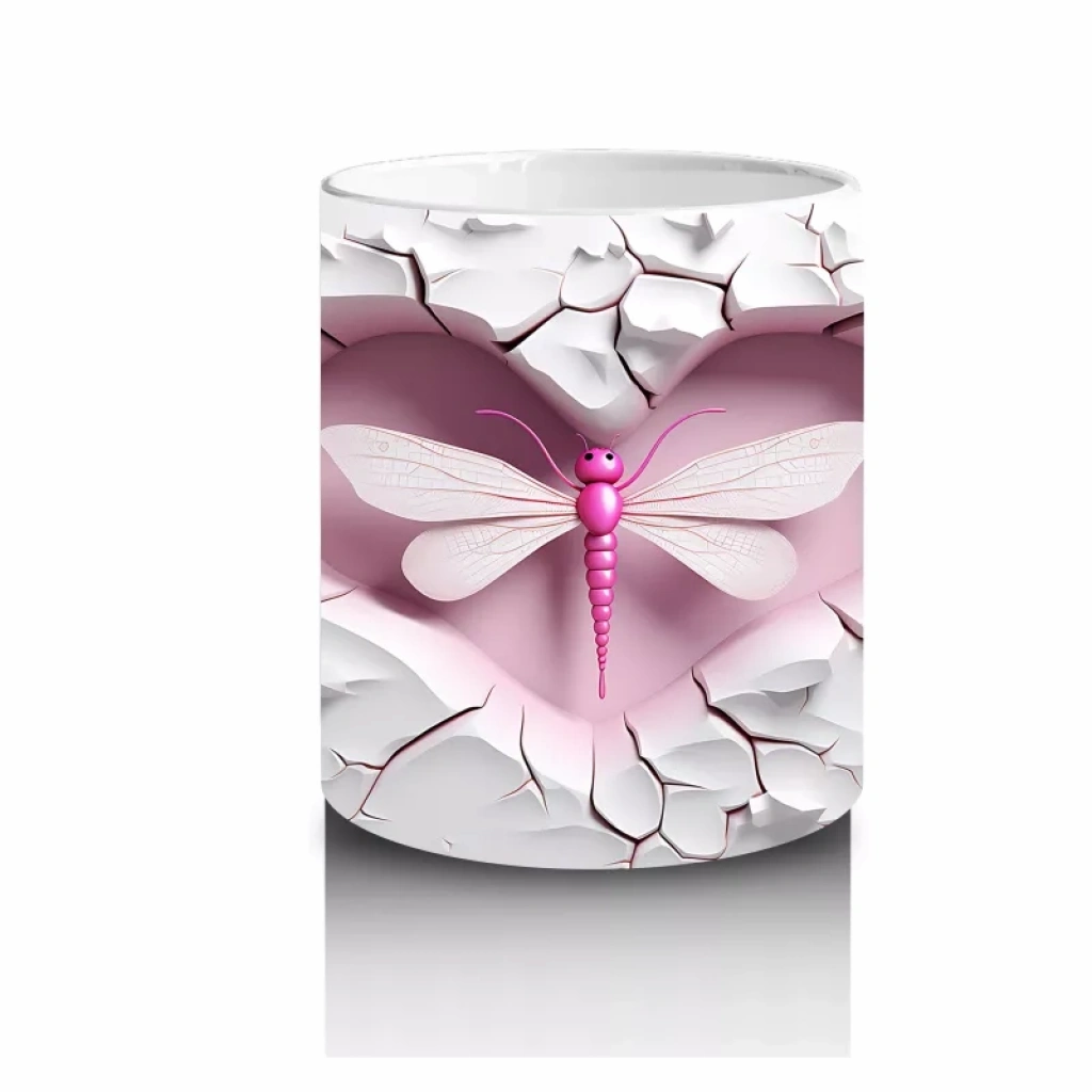 Çatlak duvarın üzerinde ışıldayan pembe yusufçuk, sadelik ve zarafeti bir araya getiriyor. Doğanın hafifliğini yansıtan bu tasarım, sakin ve estetik bir kupa arayanlara özel.