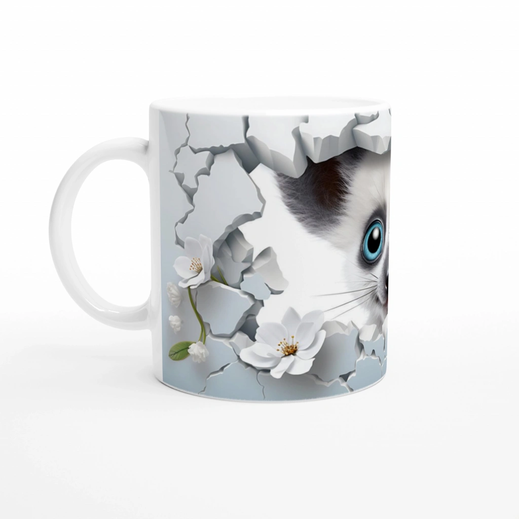 Çatlak Duvardan Bakan Lemur Temalı Baskılı Kupa Bardak, beyaz çiçeklerle çevrelenmiş kırık duvar deseninin ortasında beliriveren şirin bir lemurun sıcaklığıyla dikkat çekiyor. Doğal tasarımı ve sevimliliğiyle her yudumda içinizi ısıtır.