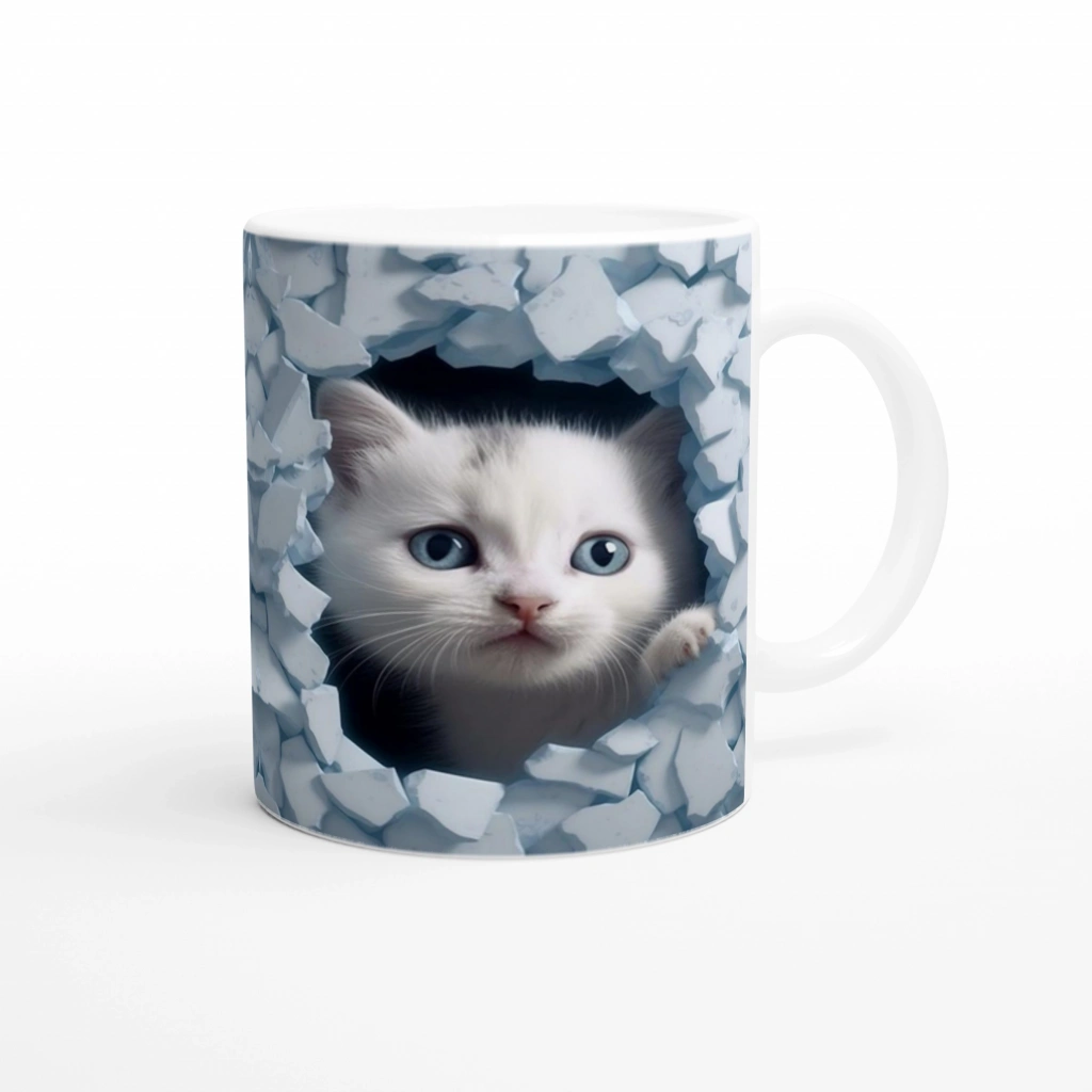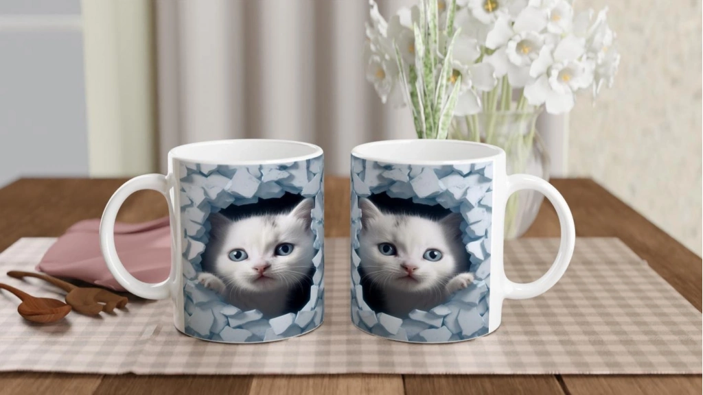Çatlak Duvardan Bakan Mavi Gözlü Yavru Kediler Temalı Baskılı Kupa Bardak, iki minik kediciğin duvardan masumca bakışıyla her yudumda tatlı bir tebessüm yaratır. Sevimliliğiyle öne çıkan bu özel tasarım, hayvan severler için benzersiz bir hediye alternatifi sunar.