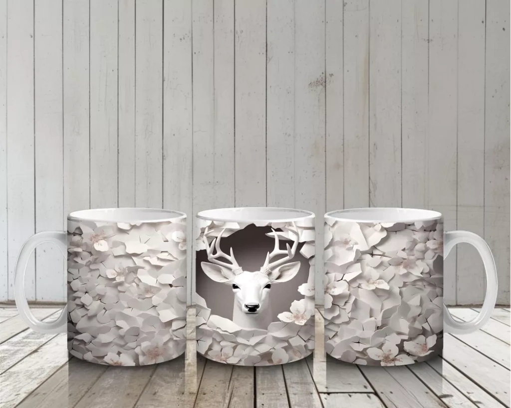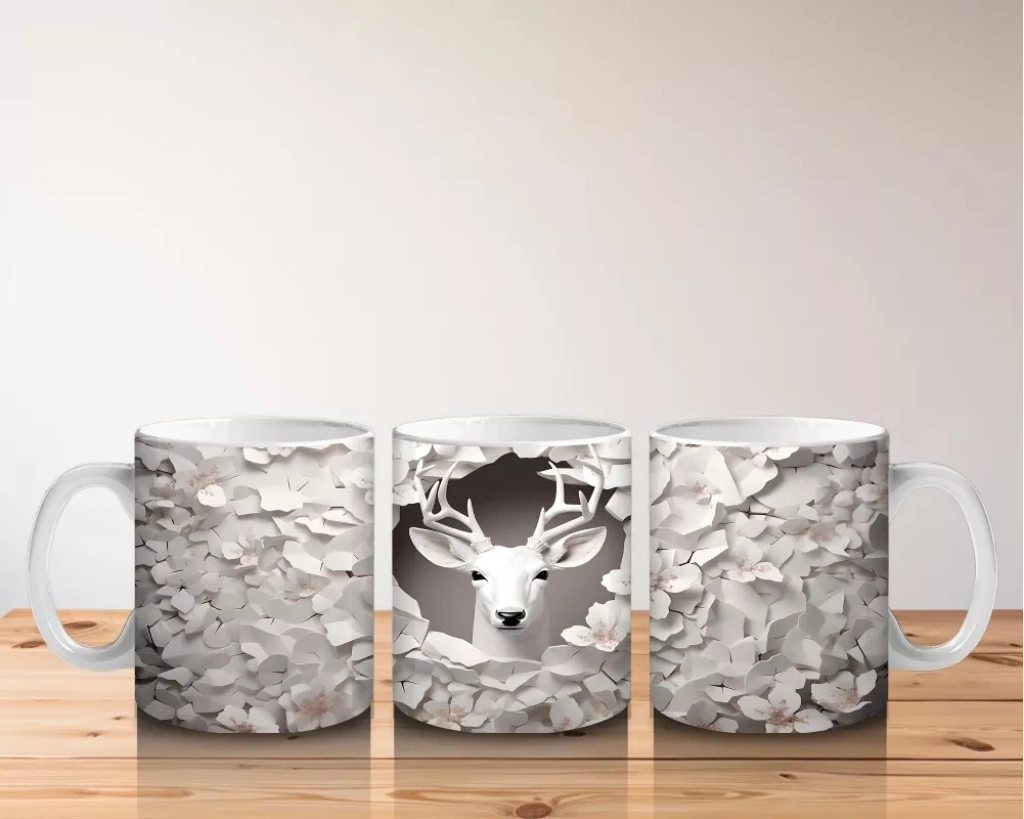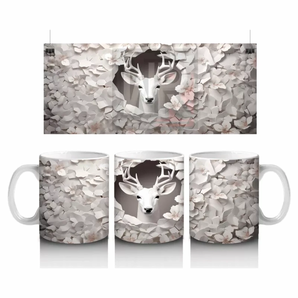 Çatlak Duvardan Bakan Soyut Geyik Figürü – Baskılı Kahve Kupası
