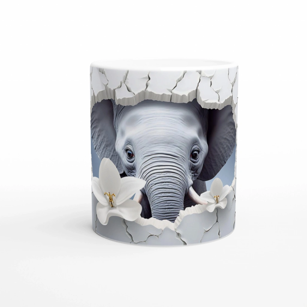 Çatlak Duvarın Ardından Bakan Fil Temalı Baskılı Kupa Bardak, güçlü ve sakin duruşuyla doğanın heybetini evinize taşıyor. Beyaz çiçeklerle çevrili bu özel tasarım, sadelik ve asaletin kusursuz birleşimi.